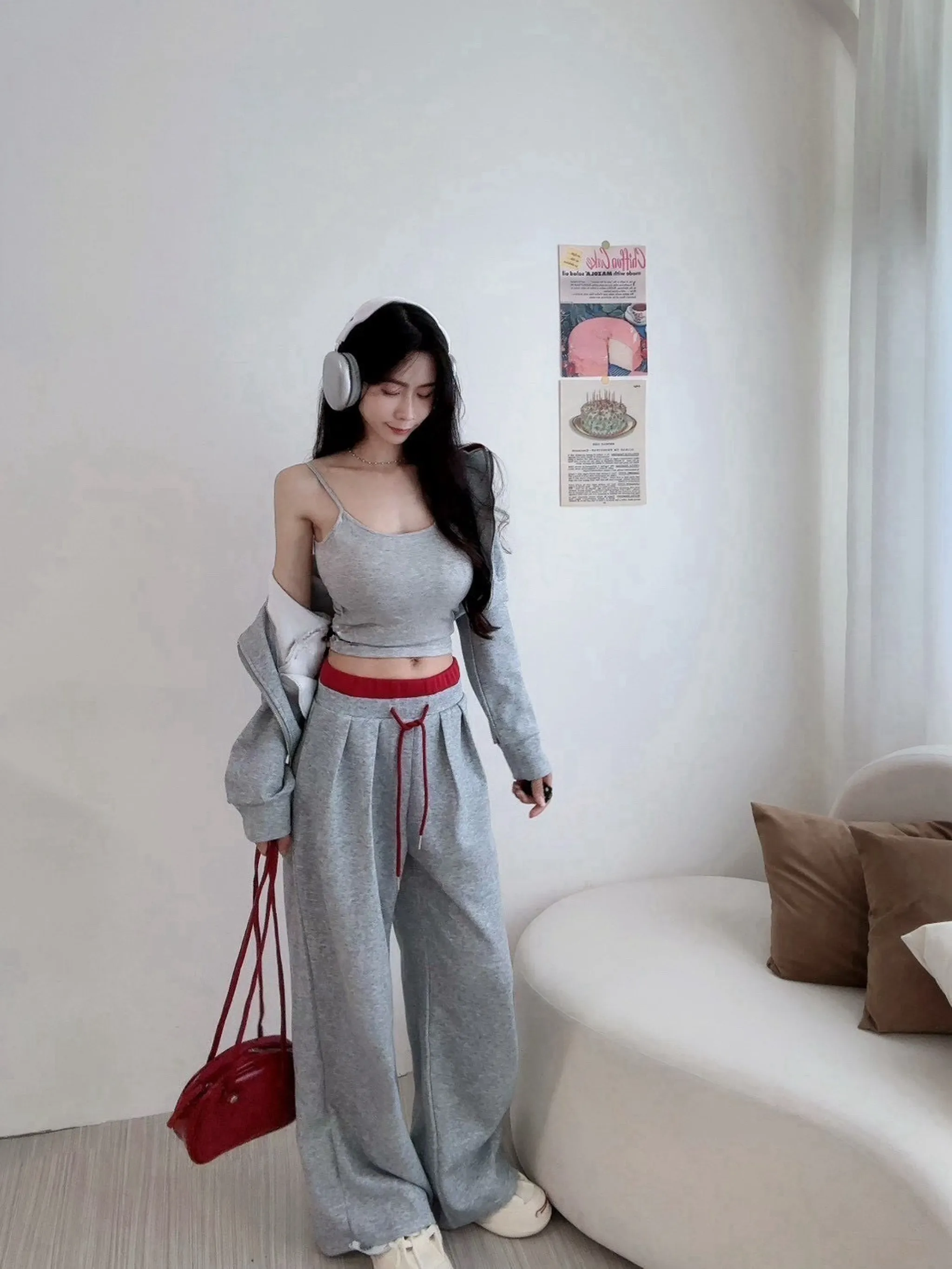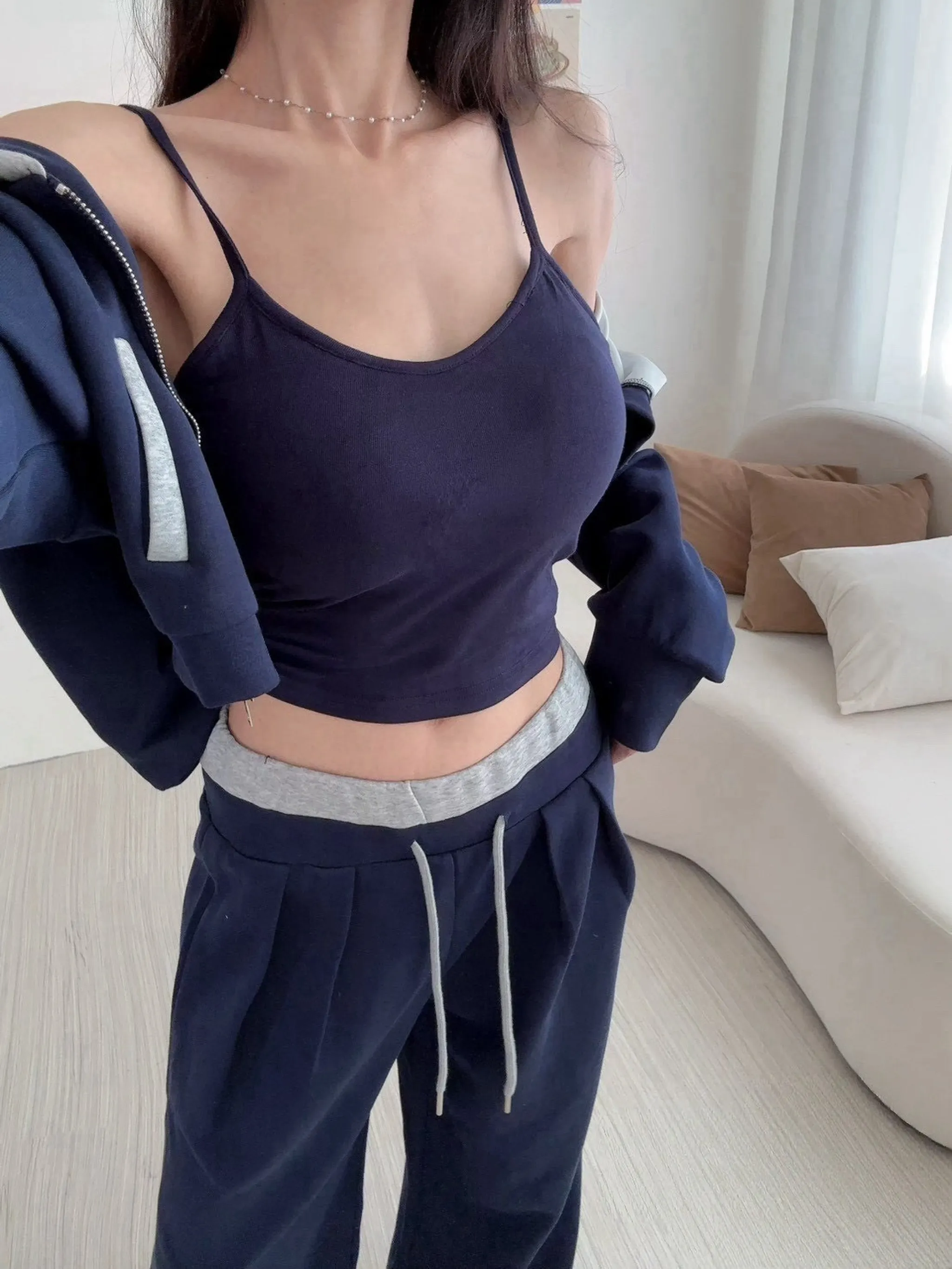 熱銷報款款拚色"罩杯"休閒set