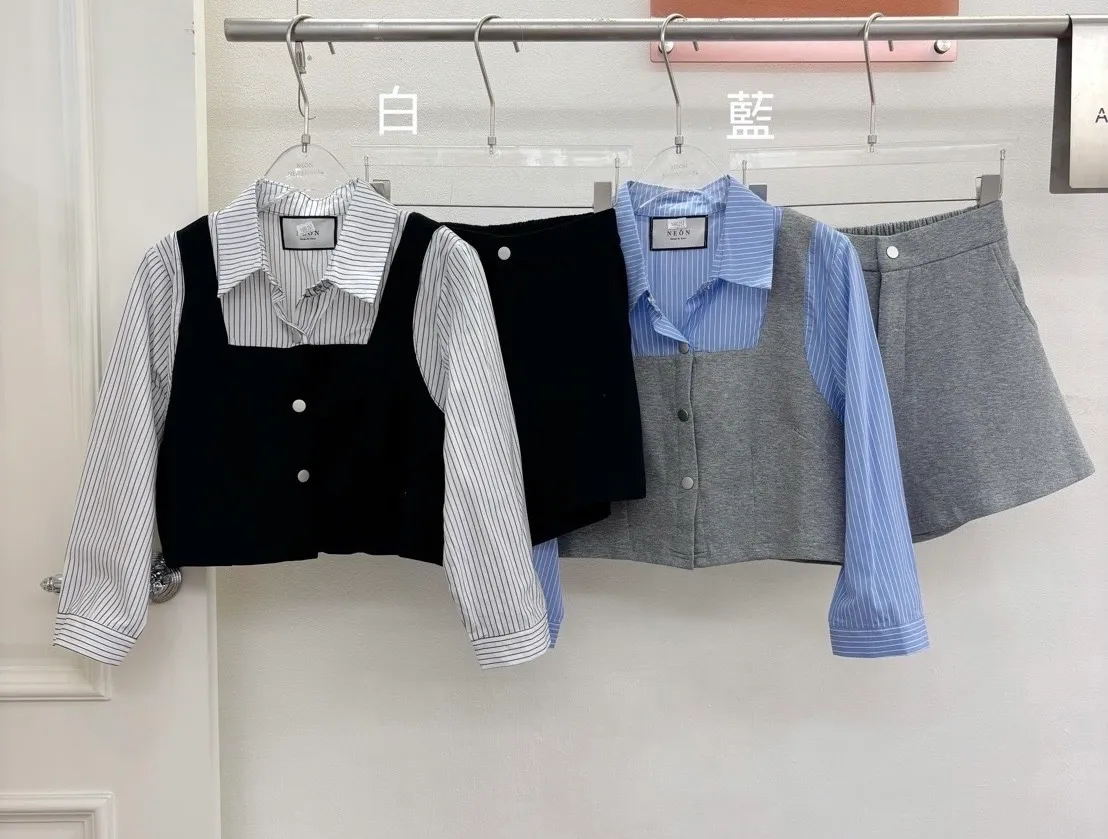 🔥熱銷新款-廠商獨家高訂款!太空棉拼接襯衫SET