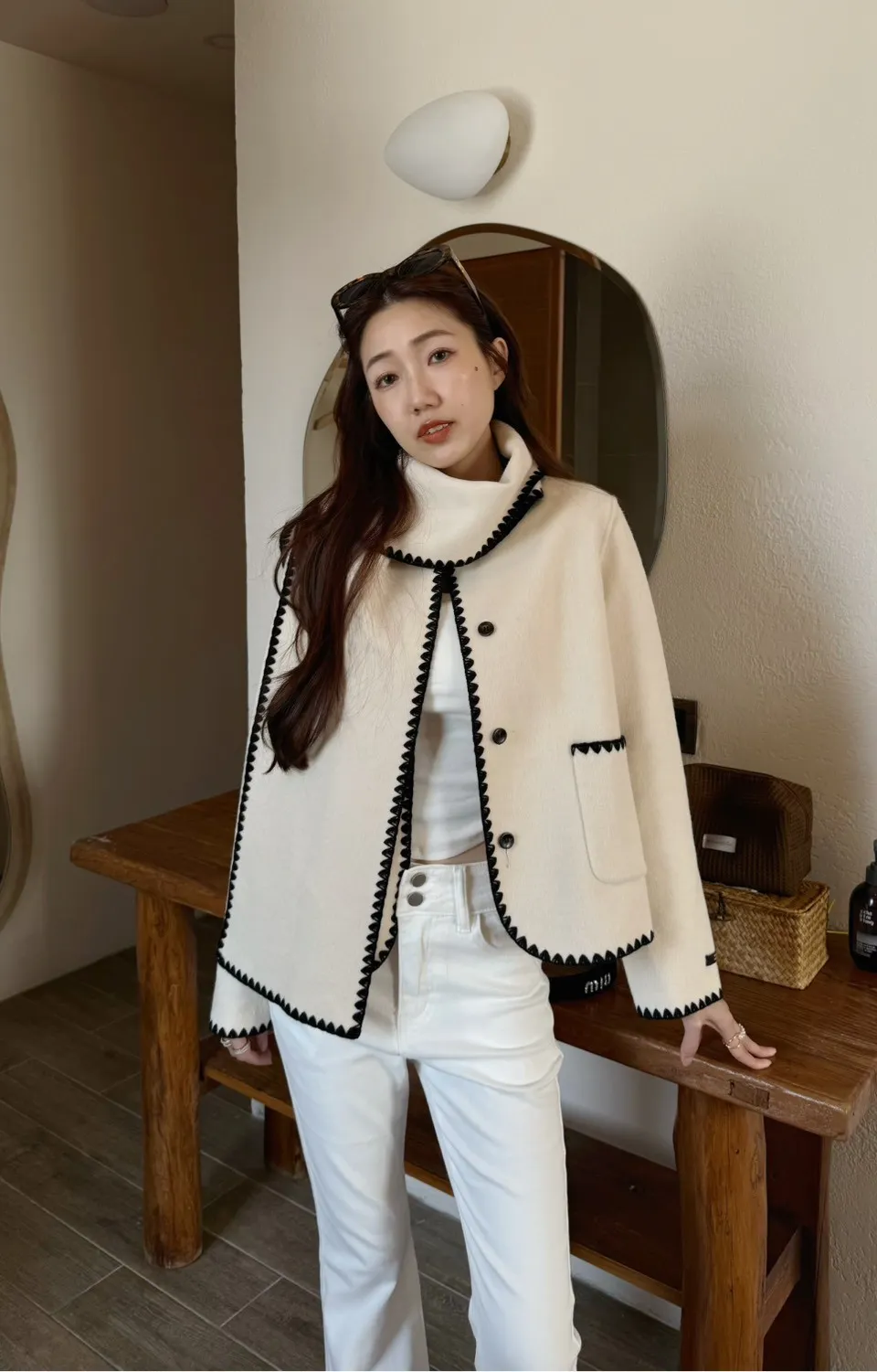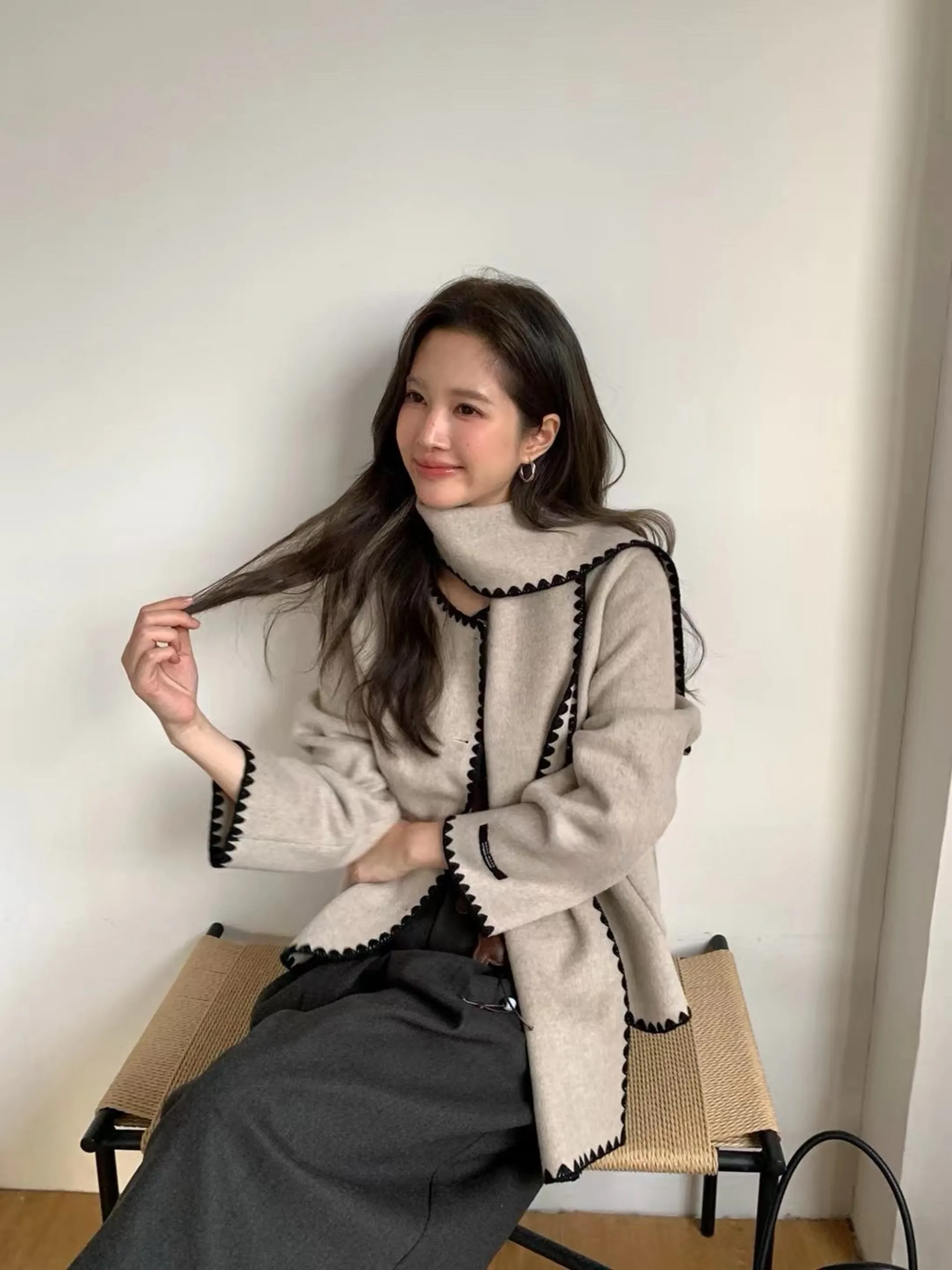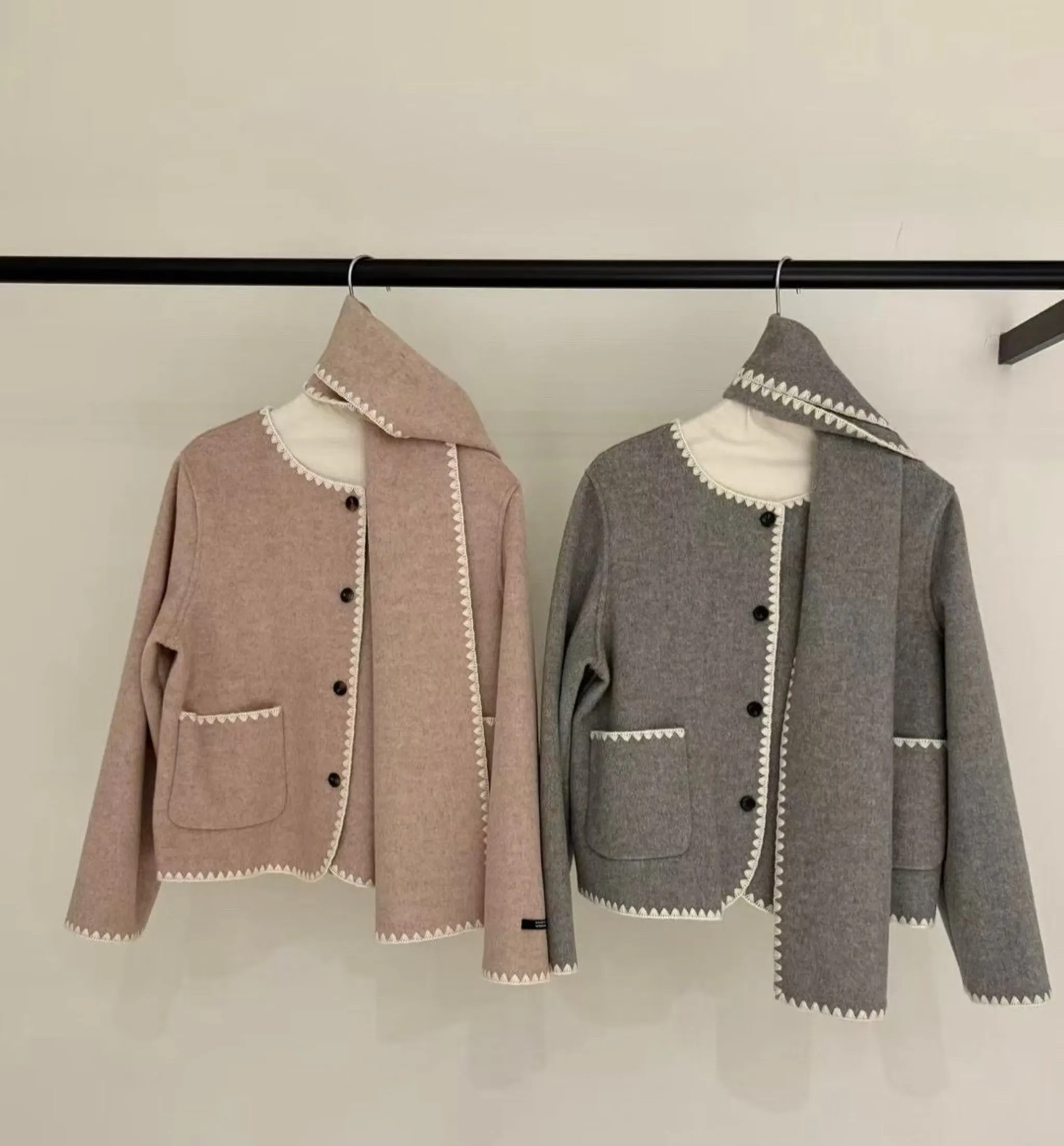 熱銷🔥🔥🔥詢問度NO.1 滾邊圍巾外套
