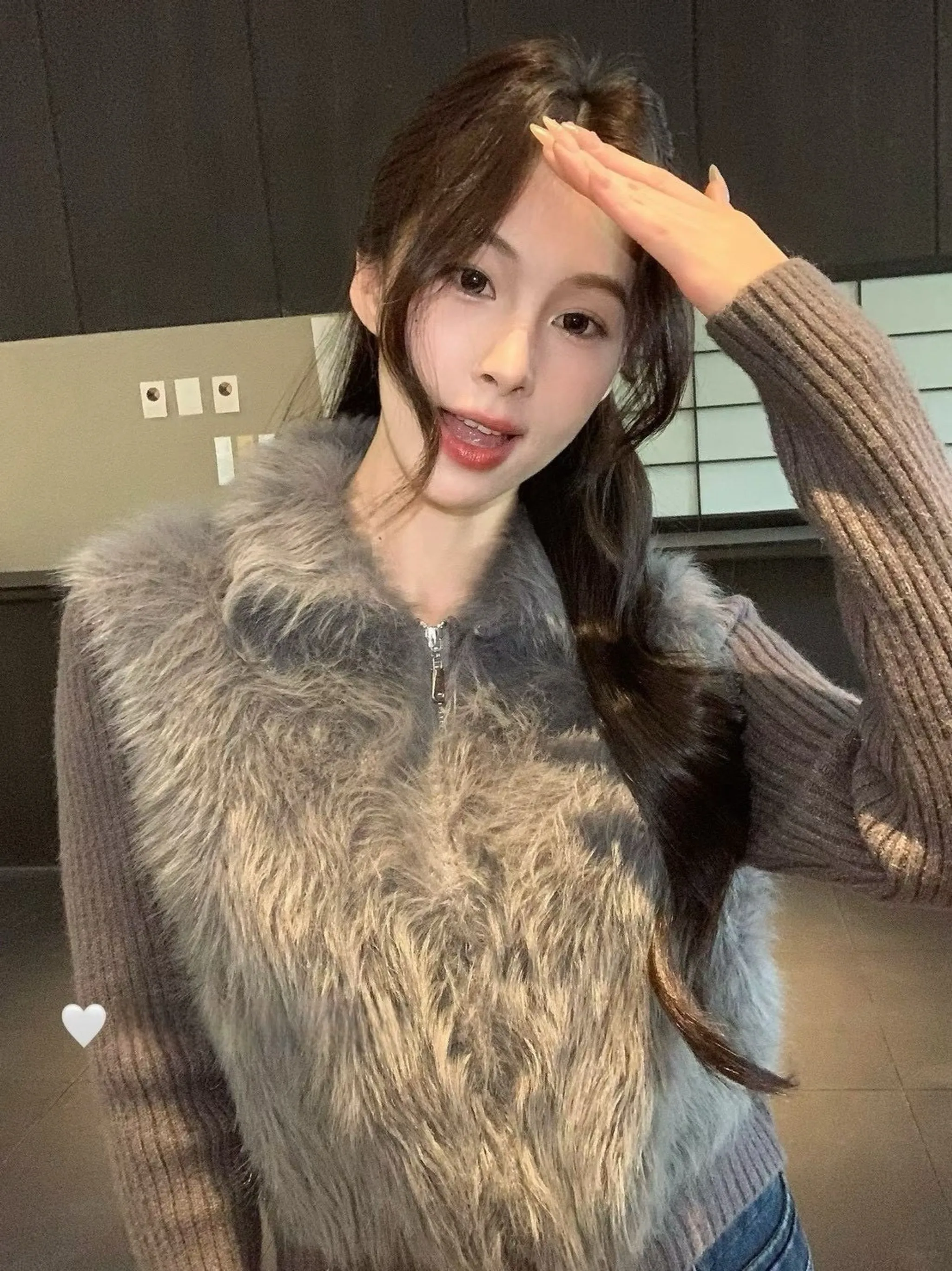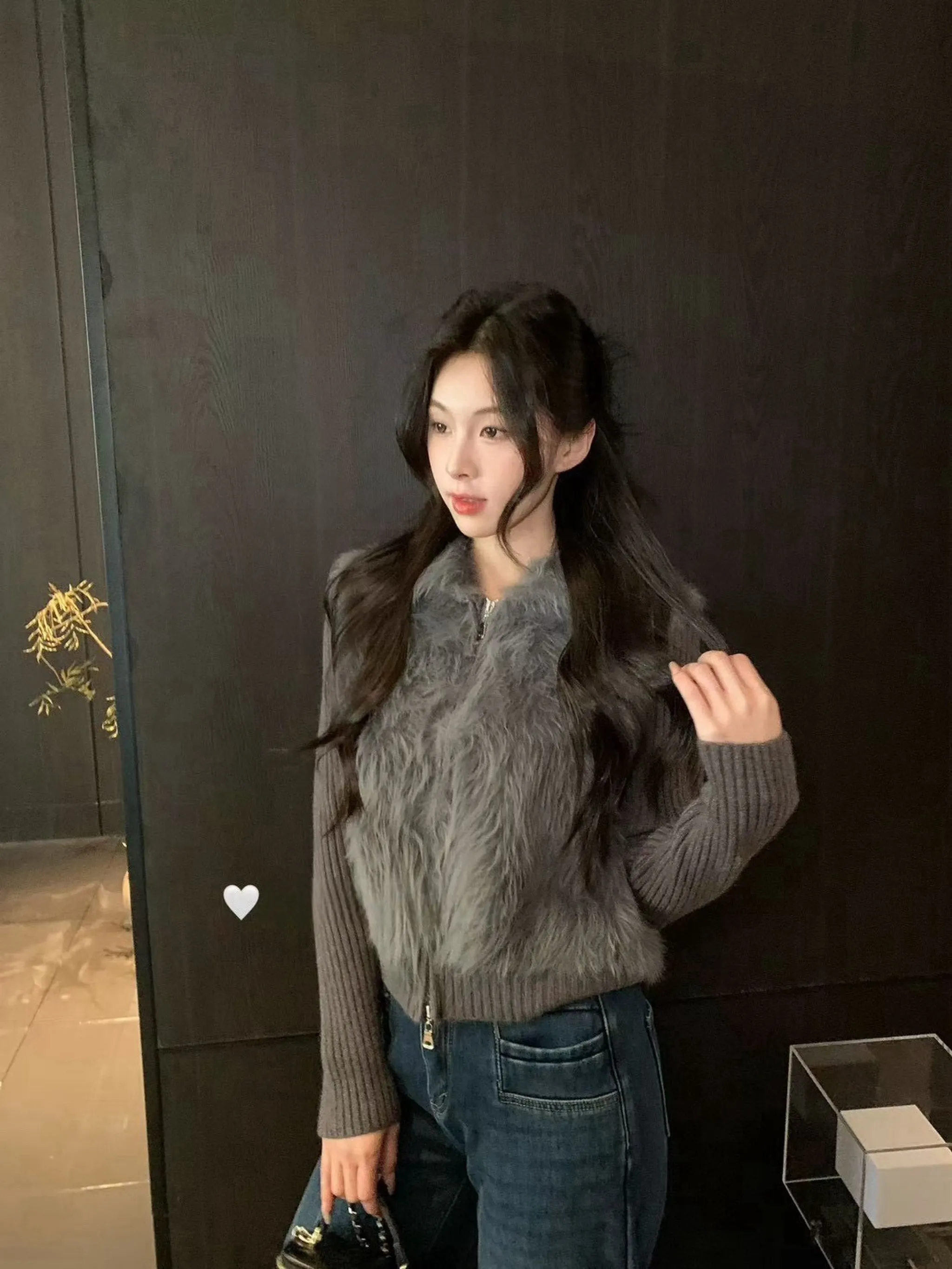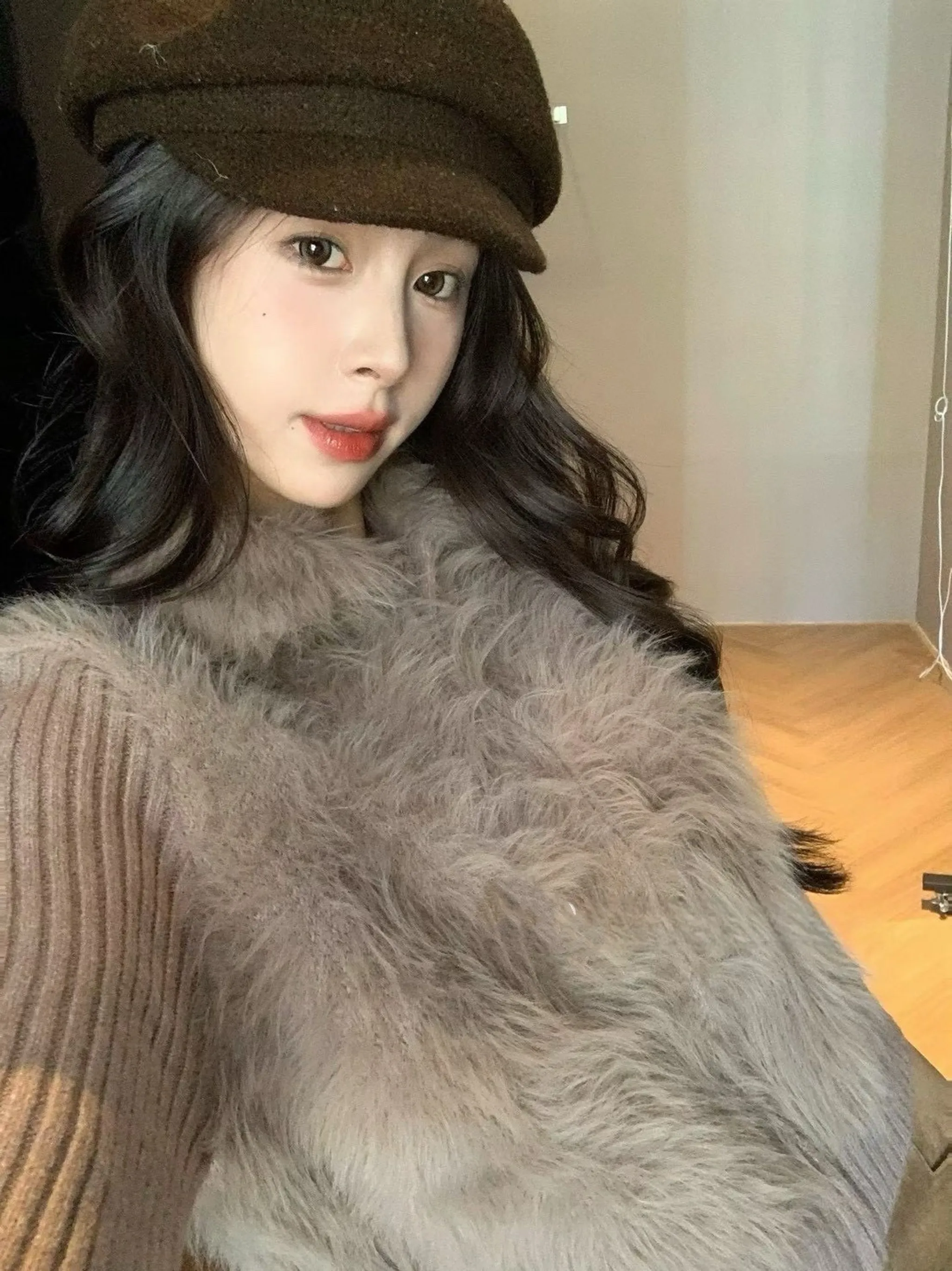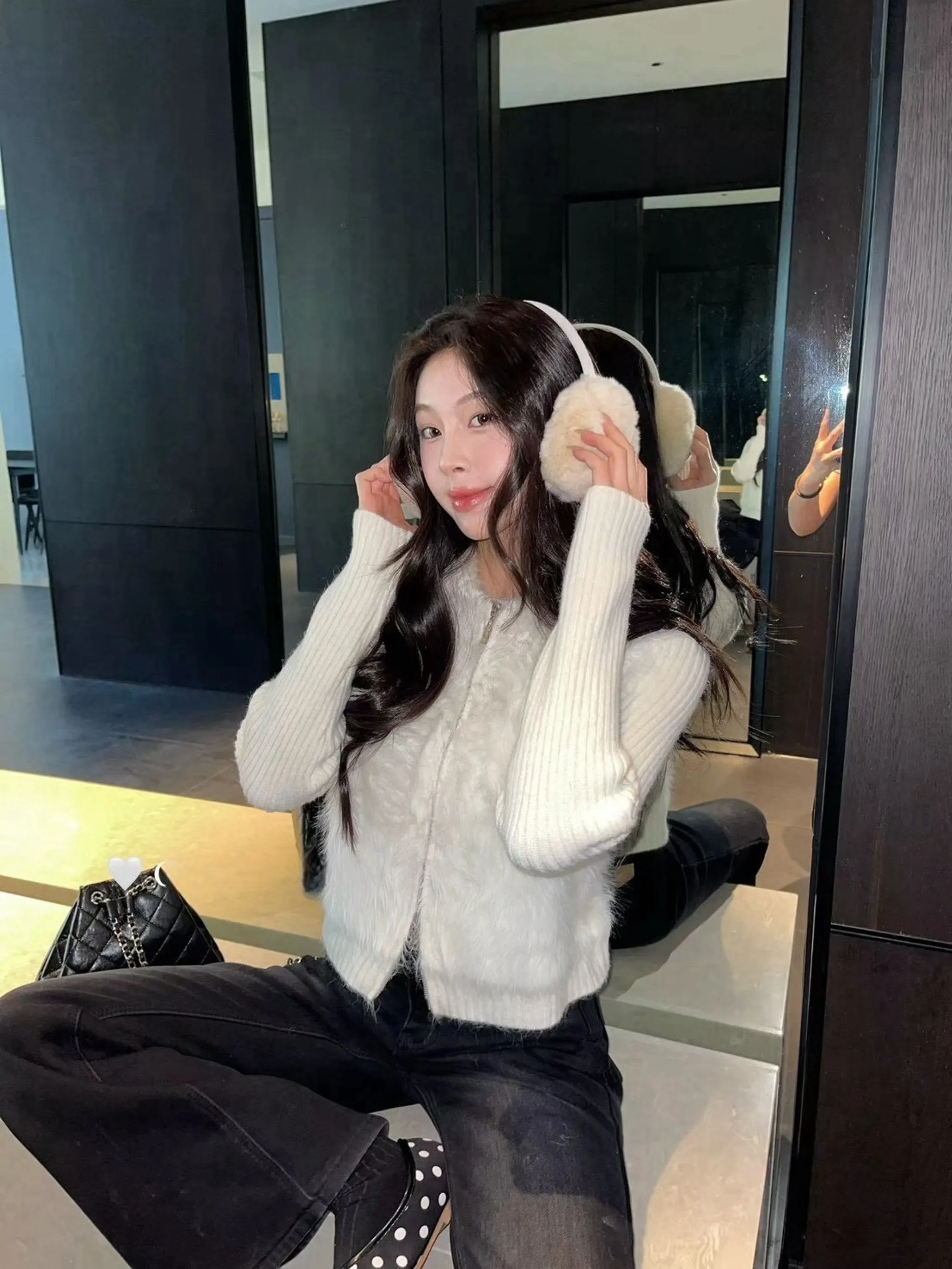12/1收單-今年必買!!拼接毛毛針織開衫