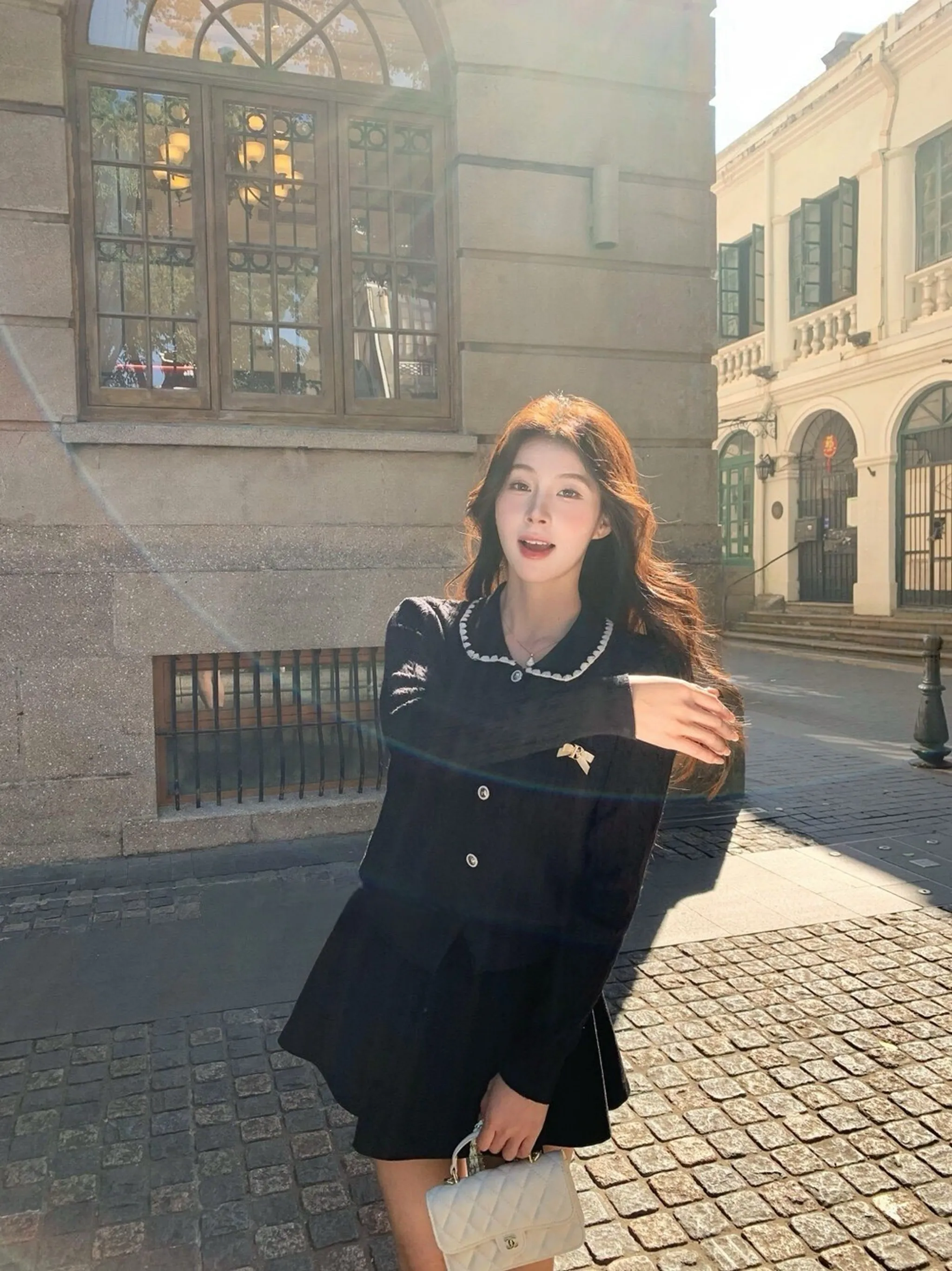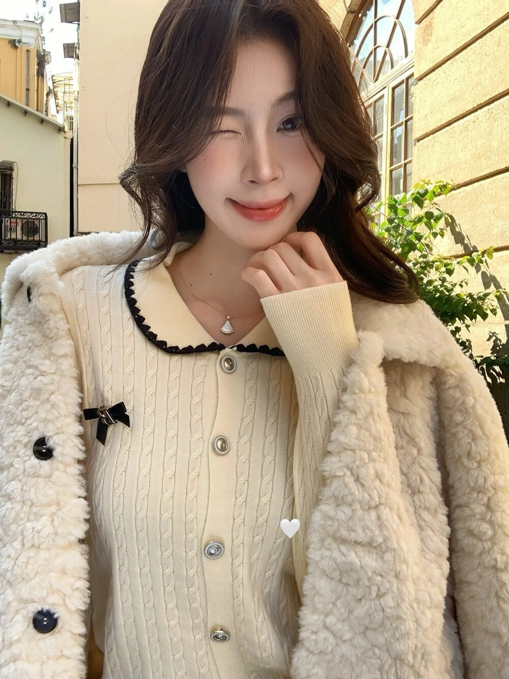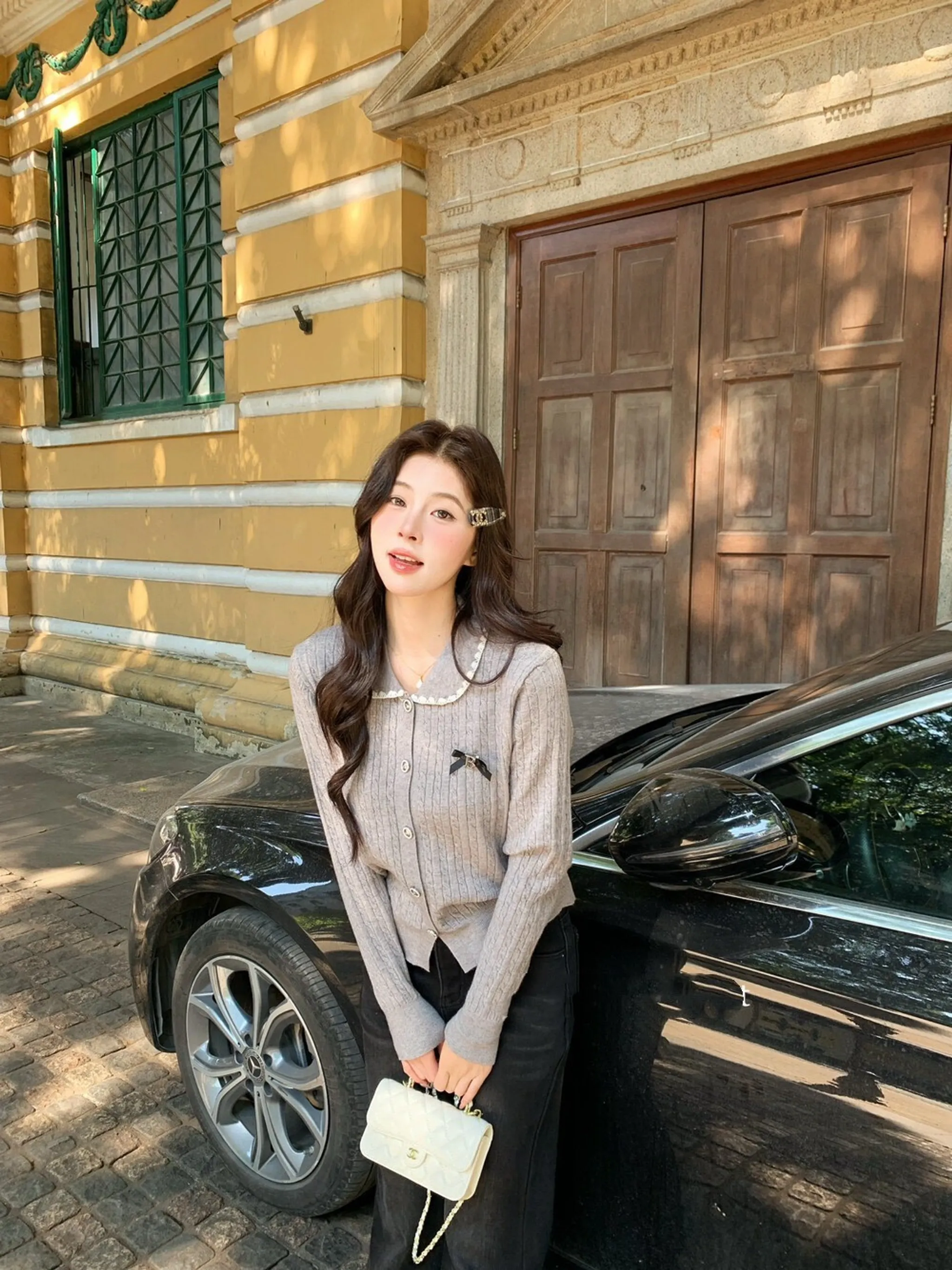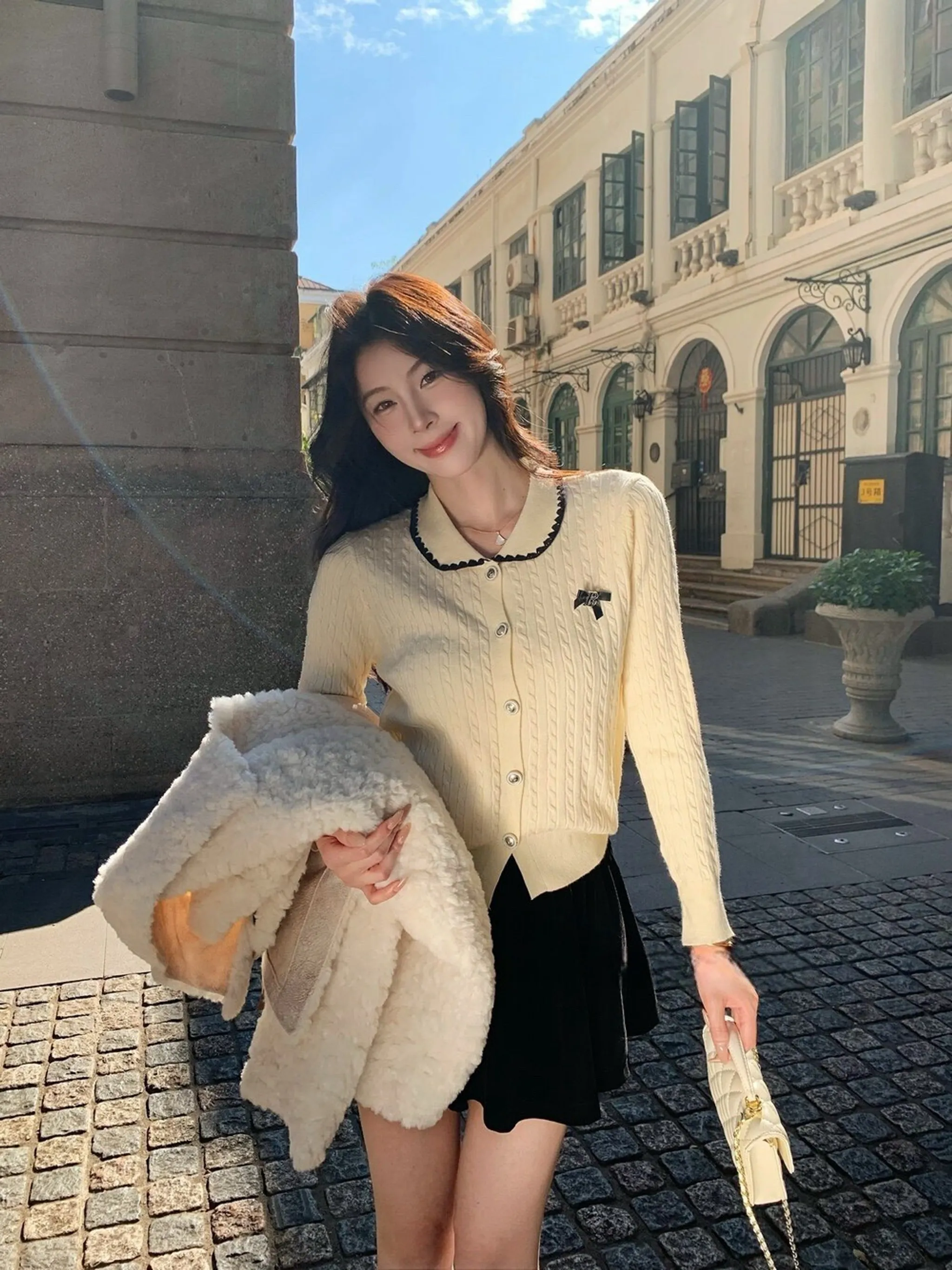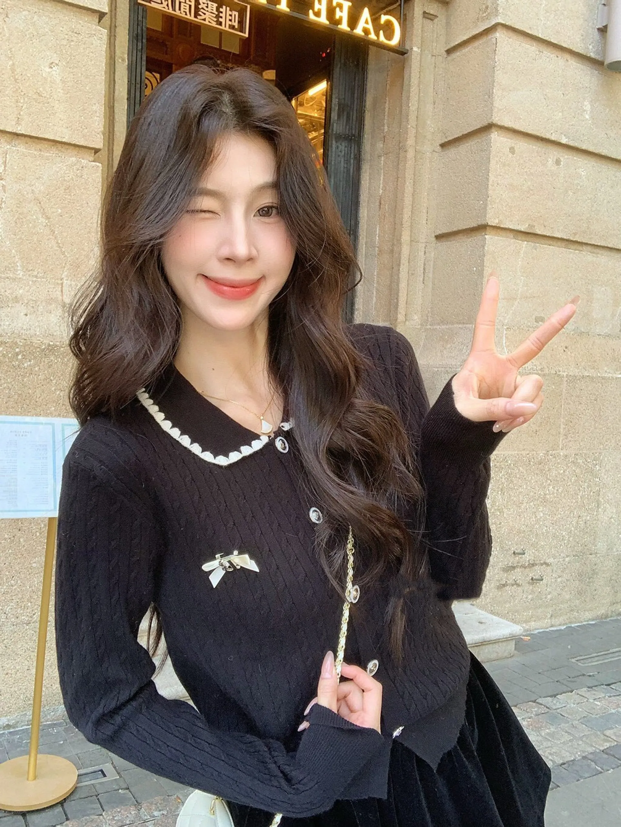 12/1收單-蝴蝶結別針海軍領麻花上衣