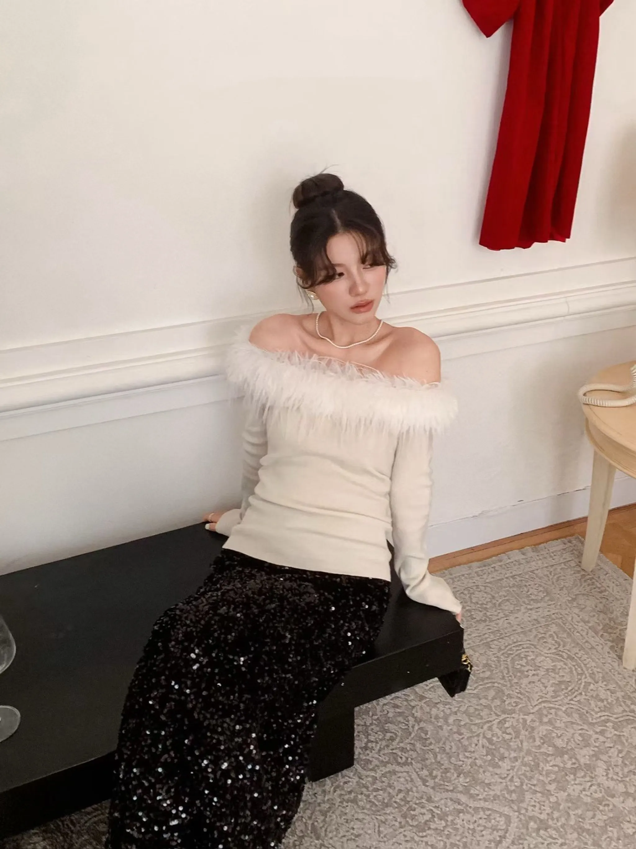 12/20收單高訂家-鴕鳥毛一字羊毛上衣
