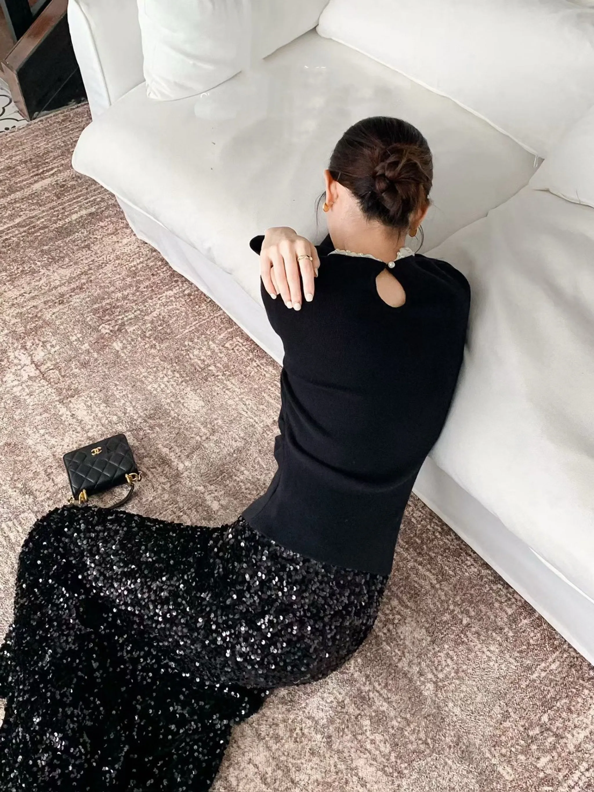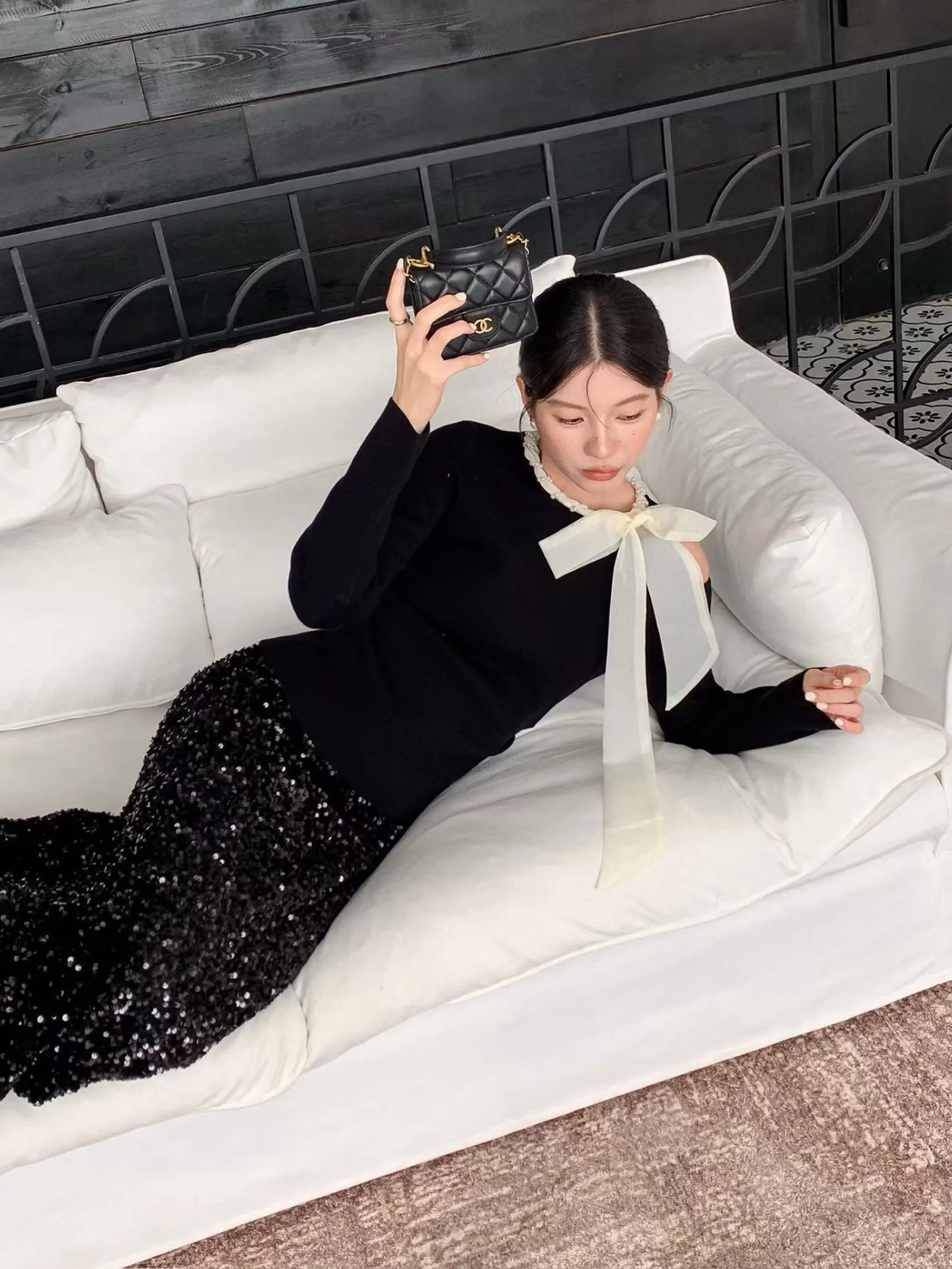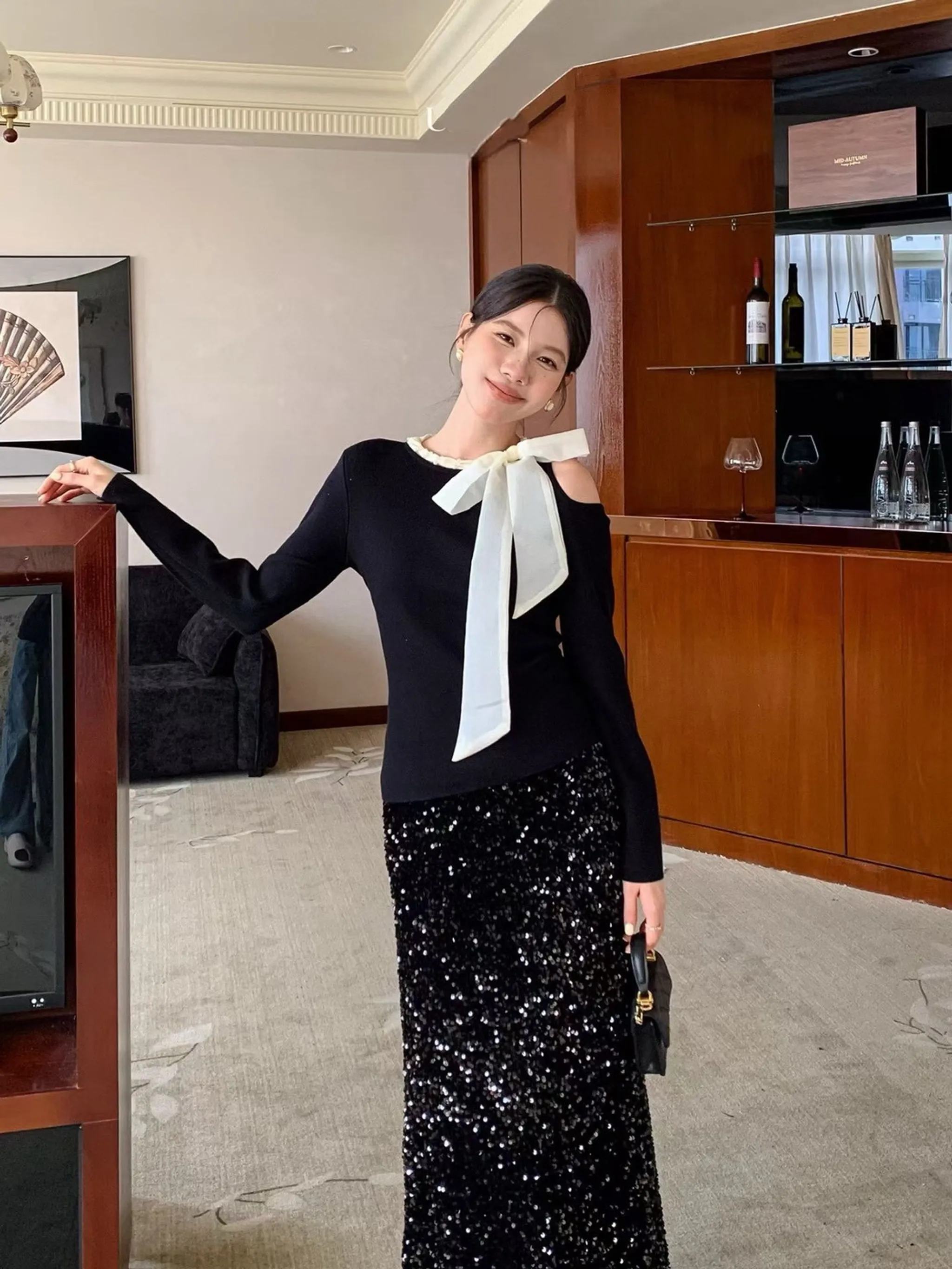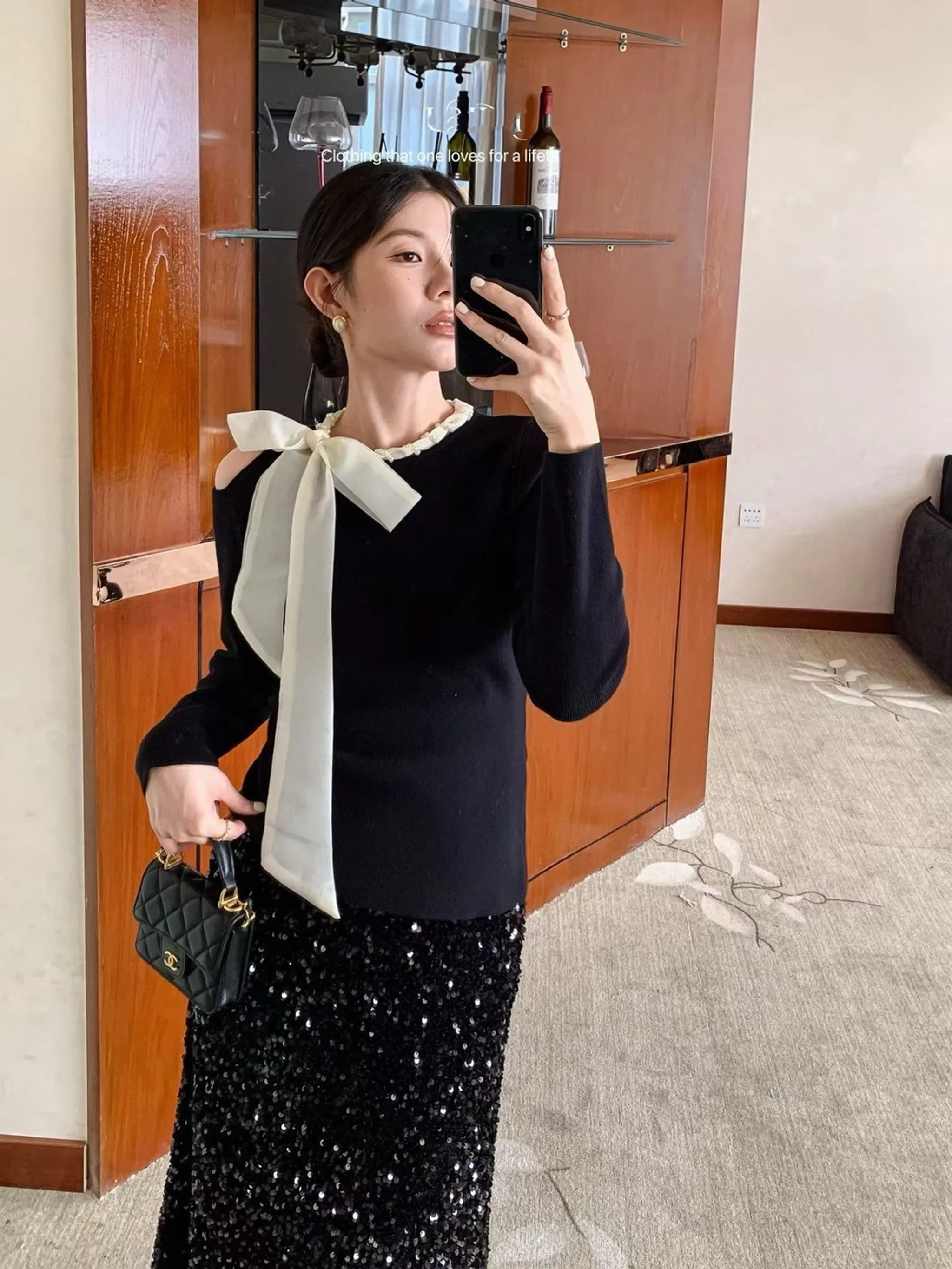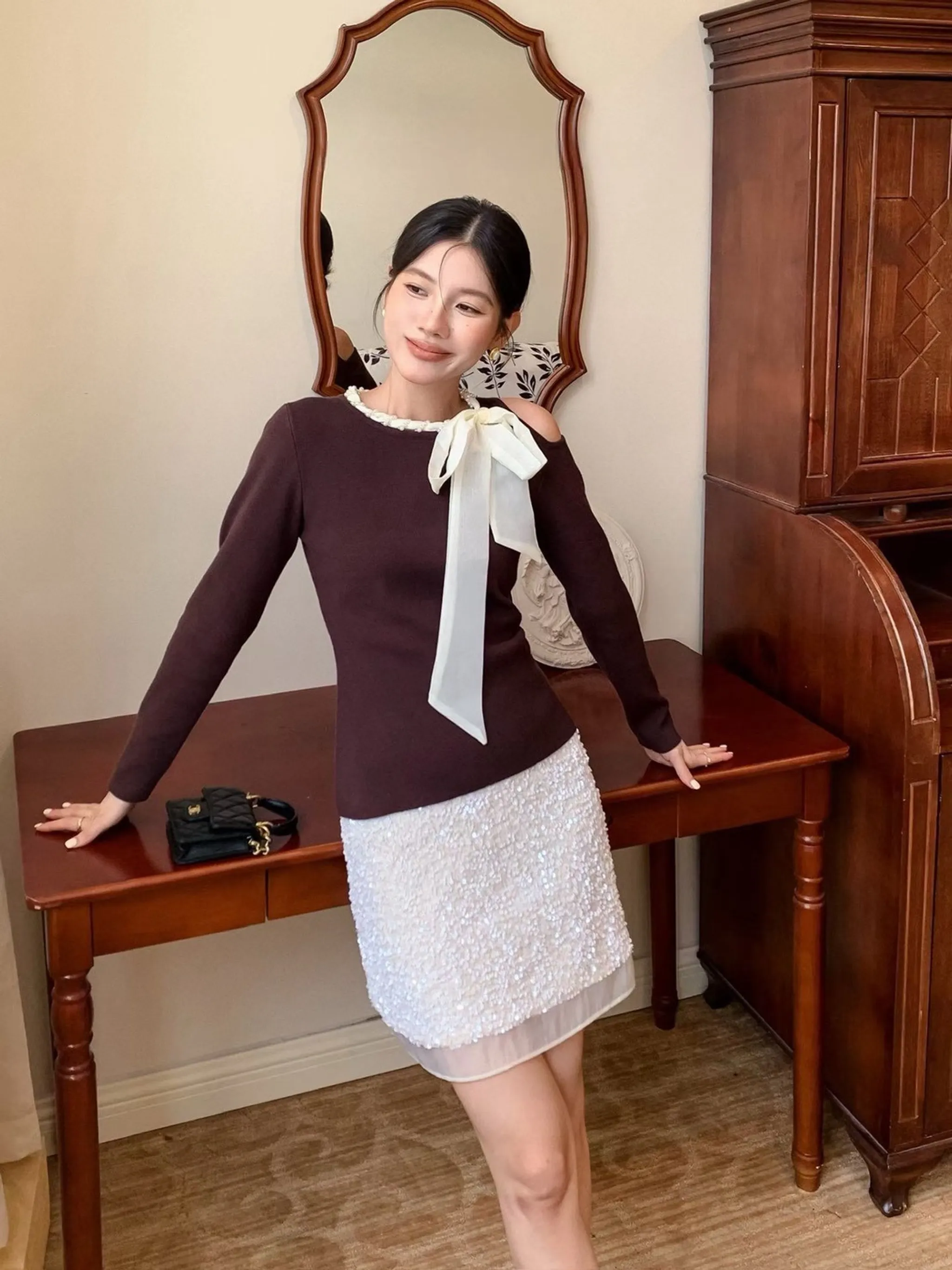 12/20收單高訂家-法式絲帶珍珠露肩上衣