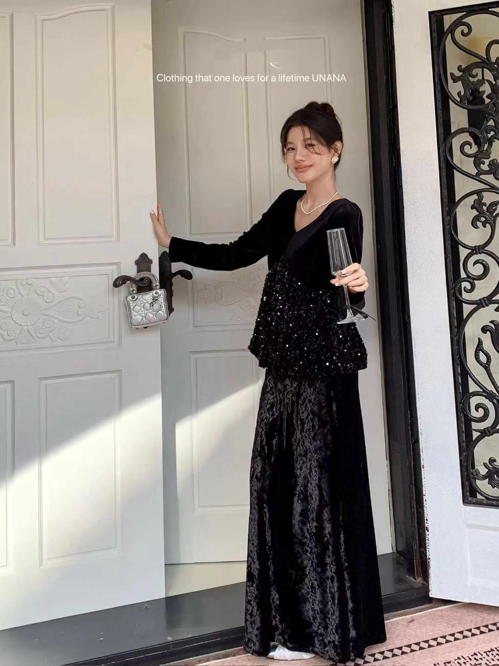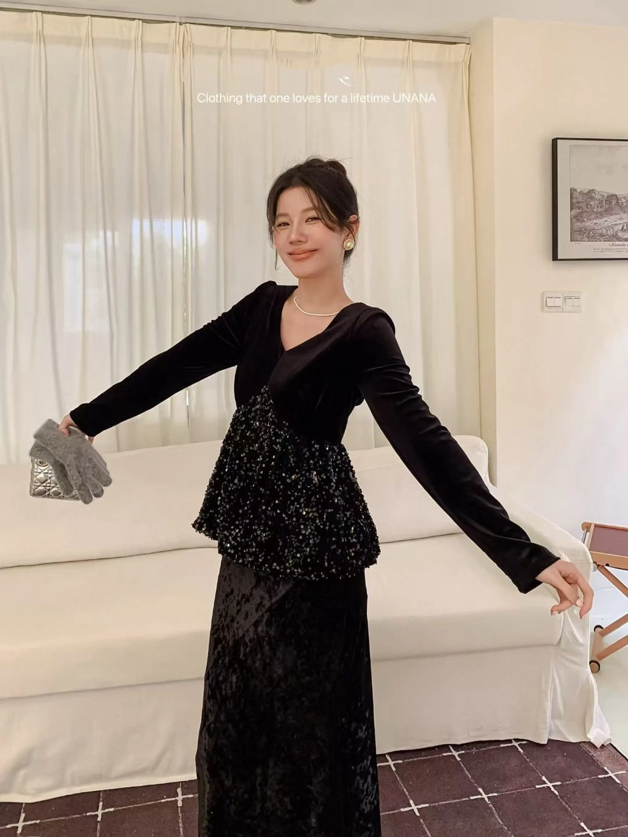 12/20收單高訂家-高級訂製絲絨拼接鑽鑽上衣