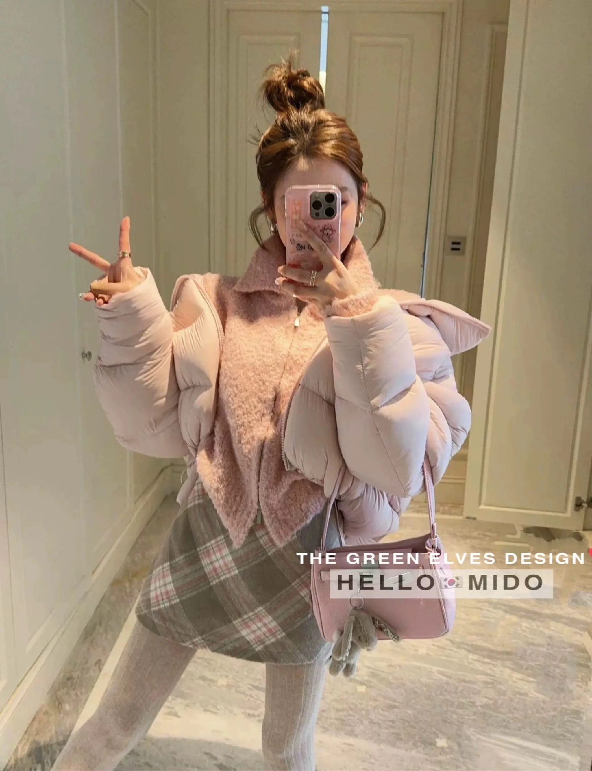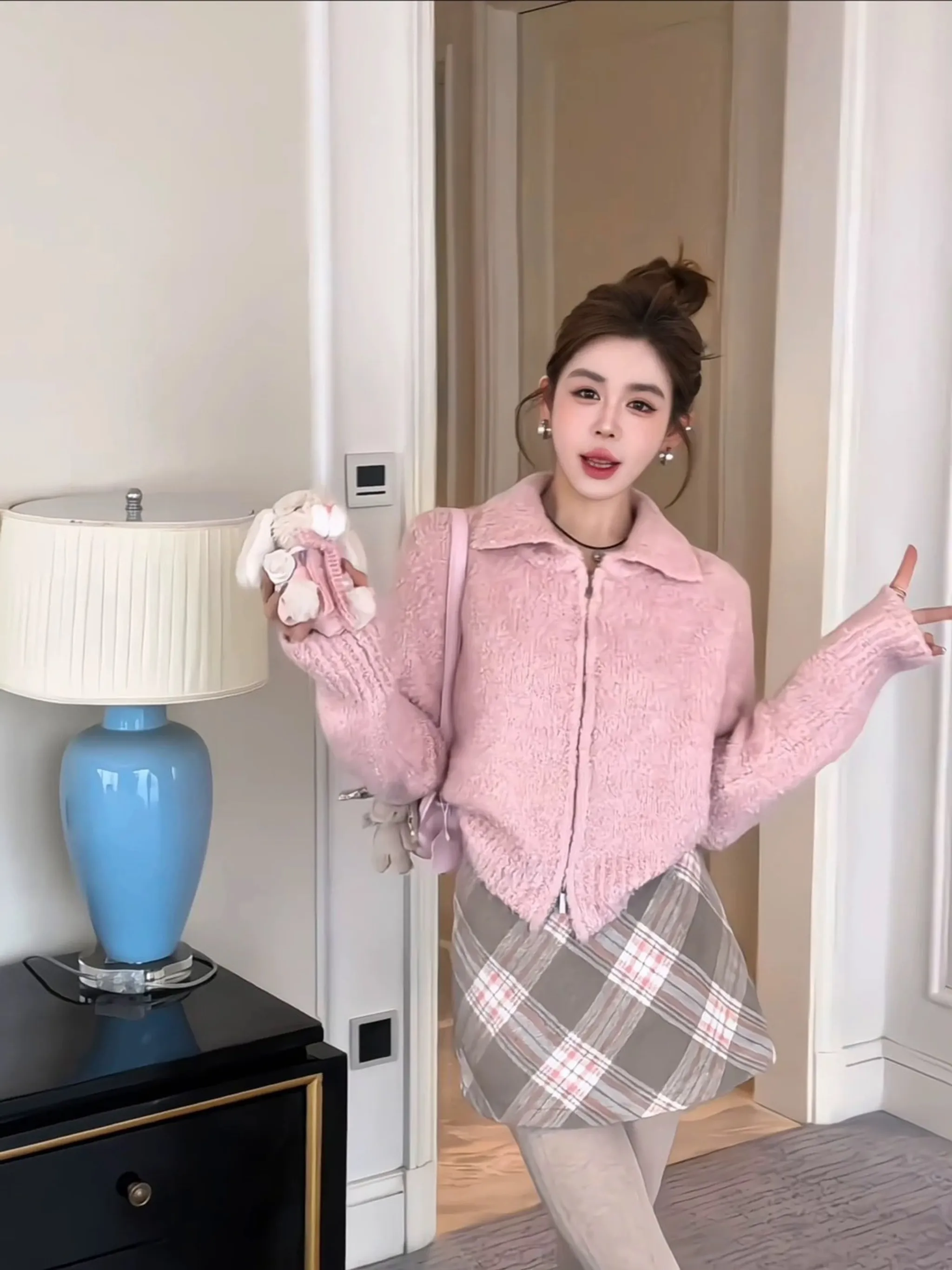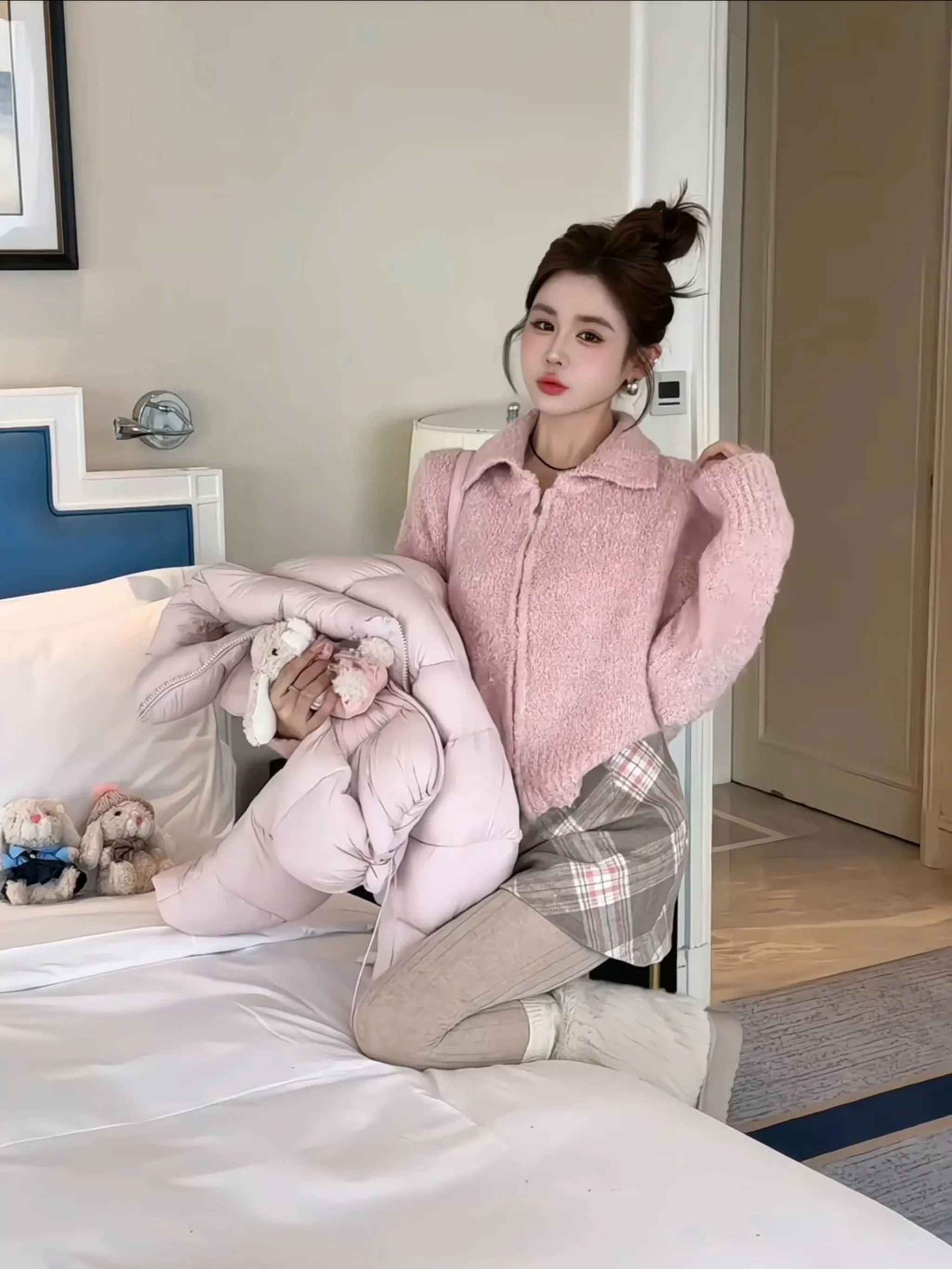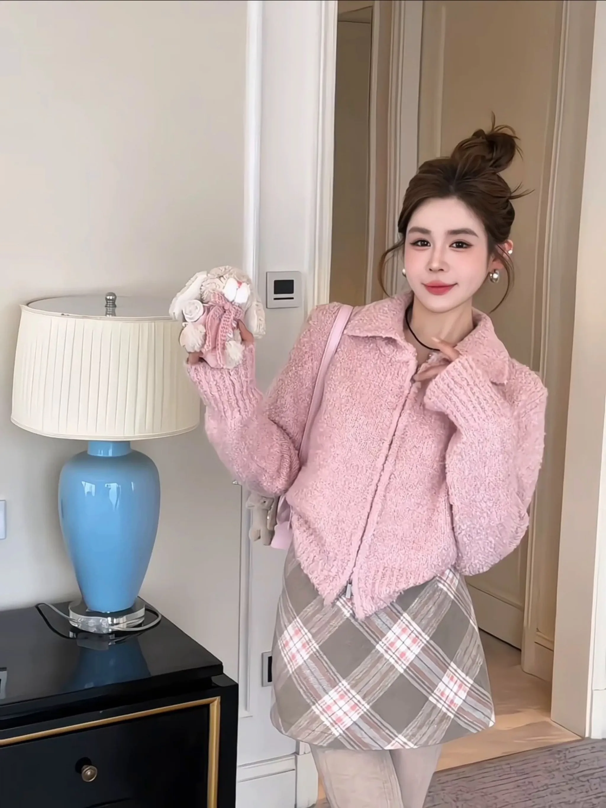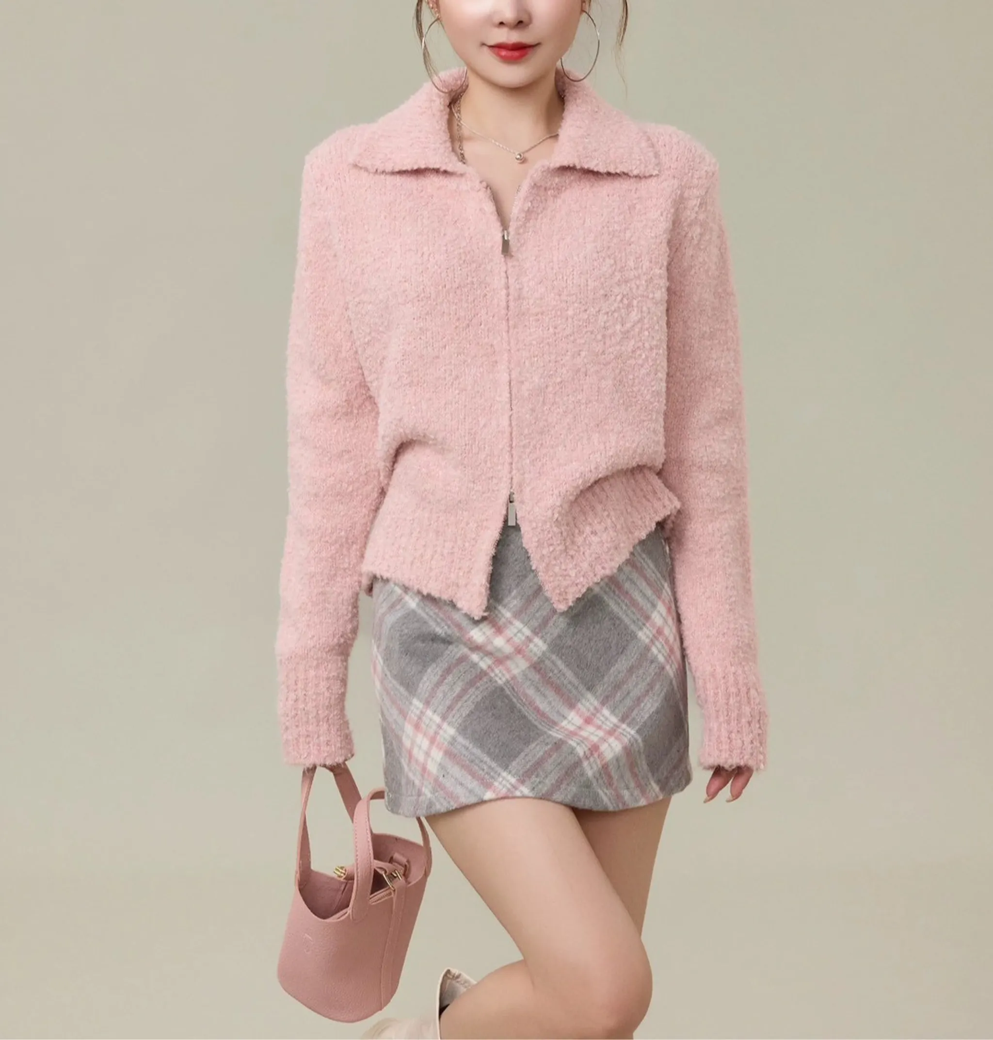 12/20收單-少女心~~顆粒感毛衣+格紋裙SET