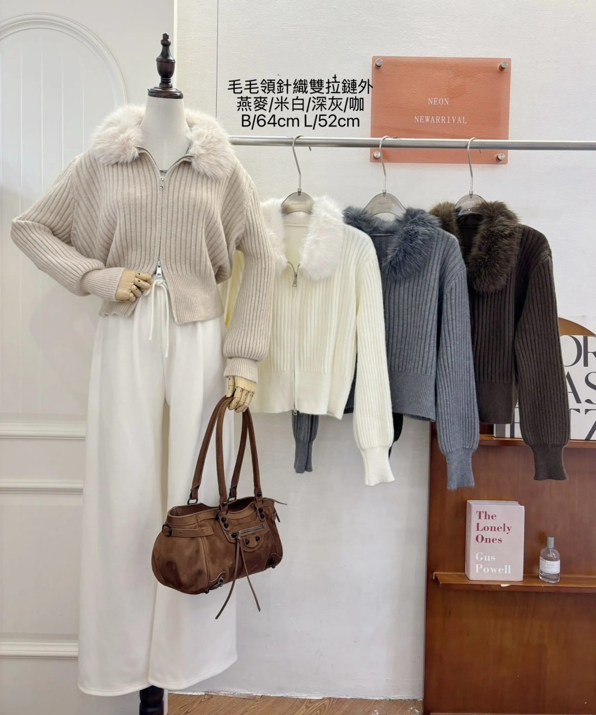 12/20收單-毛毛領雙拉鍊坑條上衣