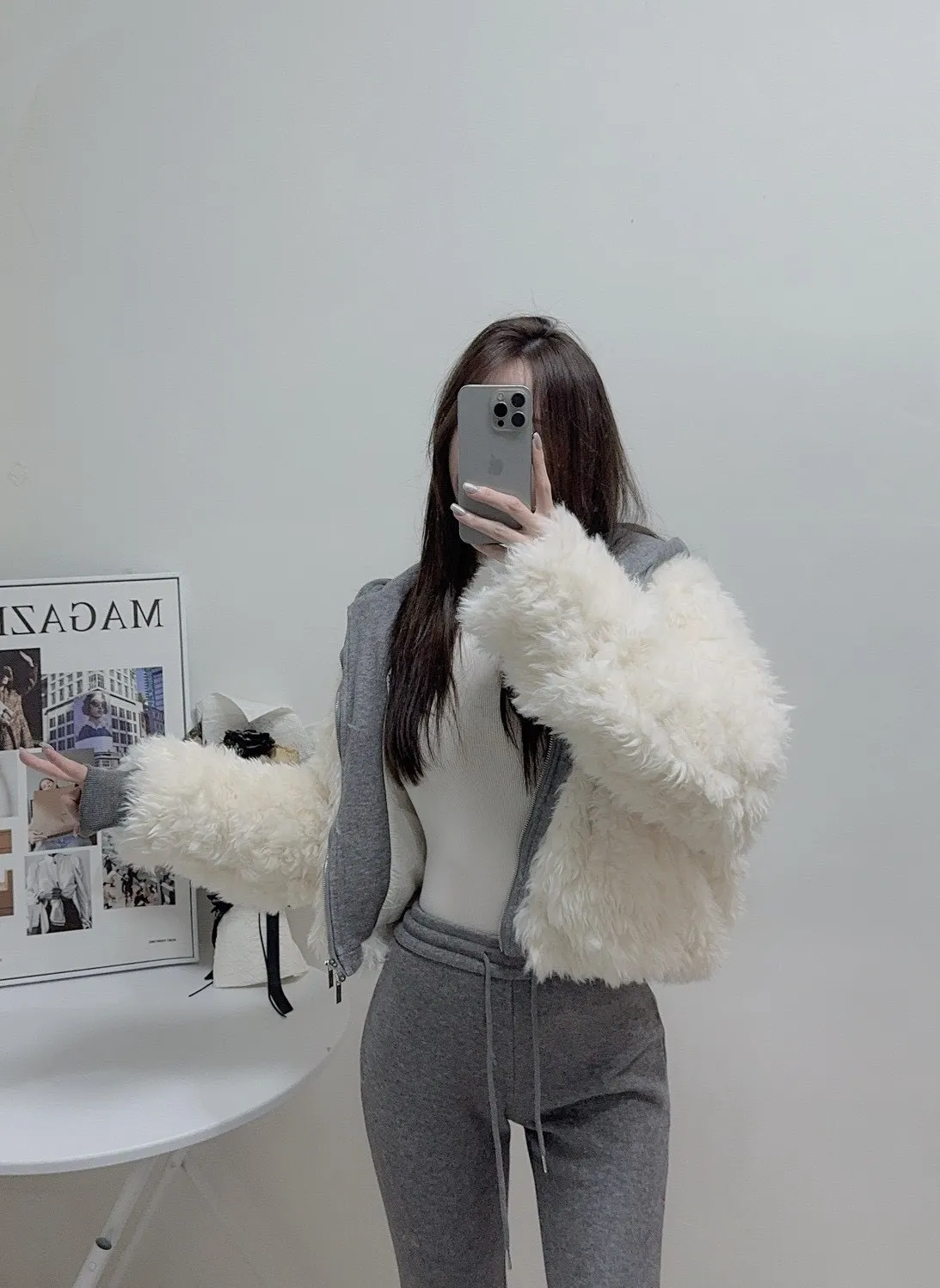 1/15收單-超出片厚磅毛毛拼接休閒set
