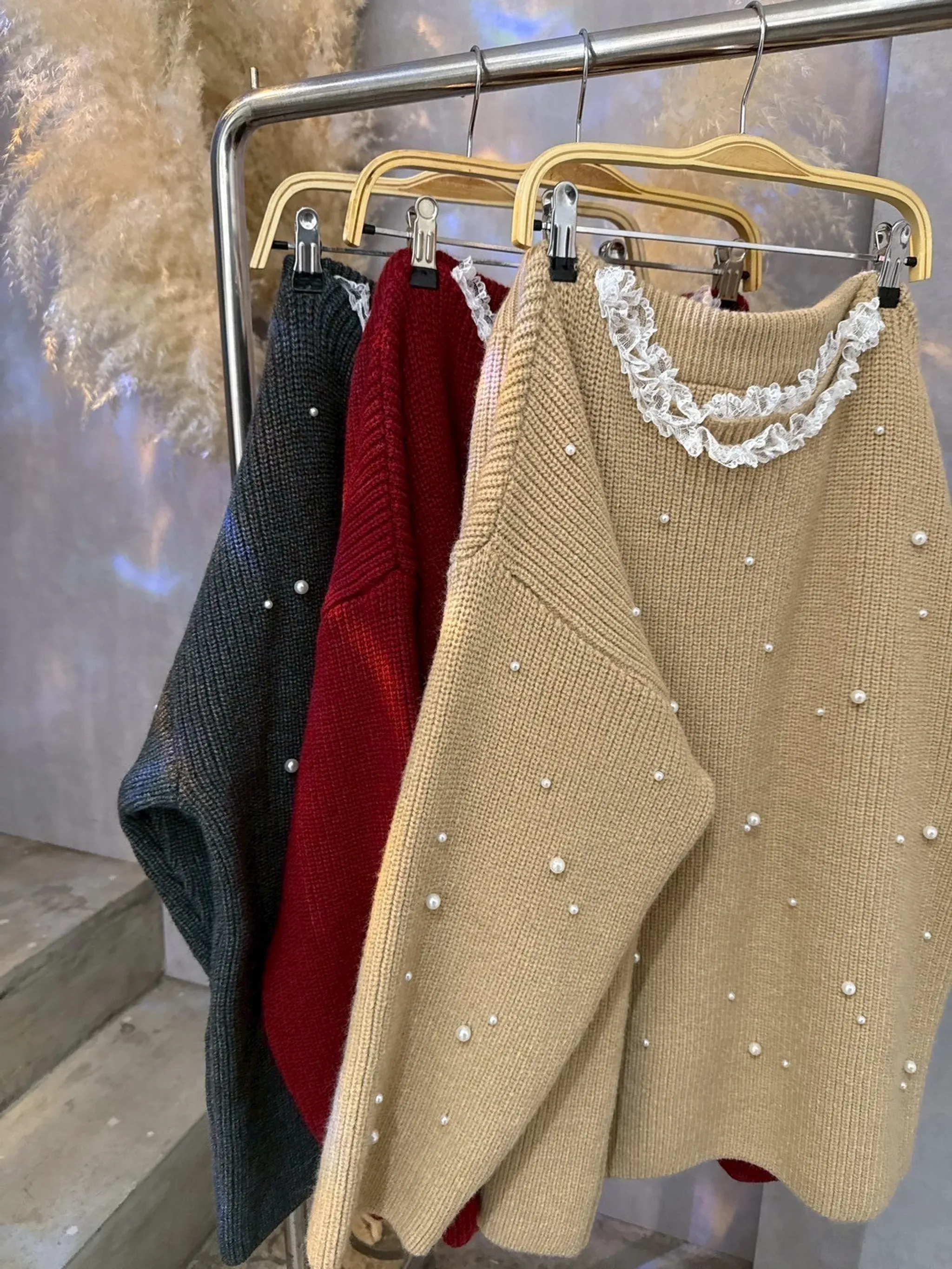 1/15收單-滿版針織蕾絲領口浪漫套裝