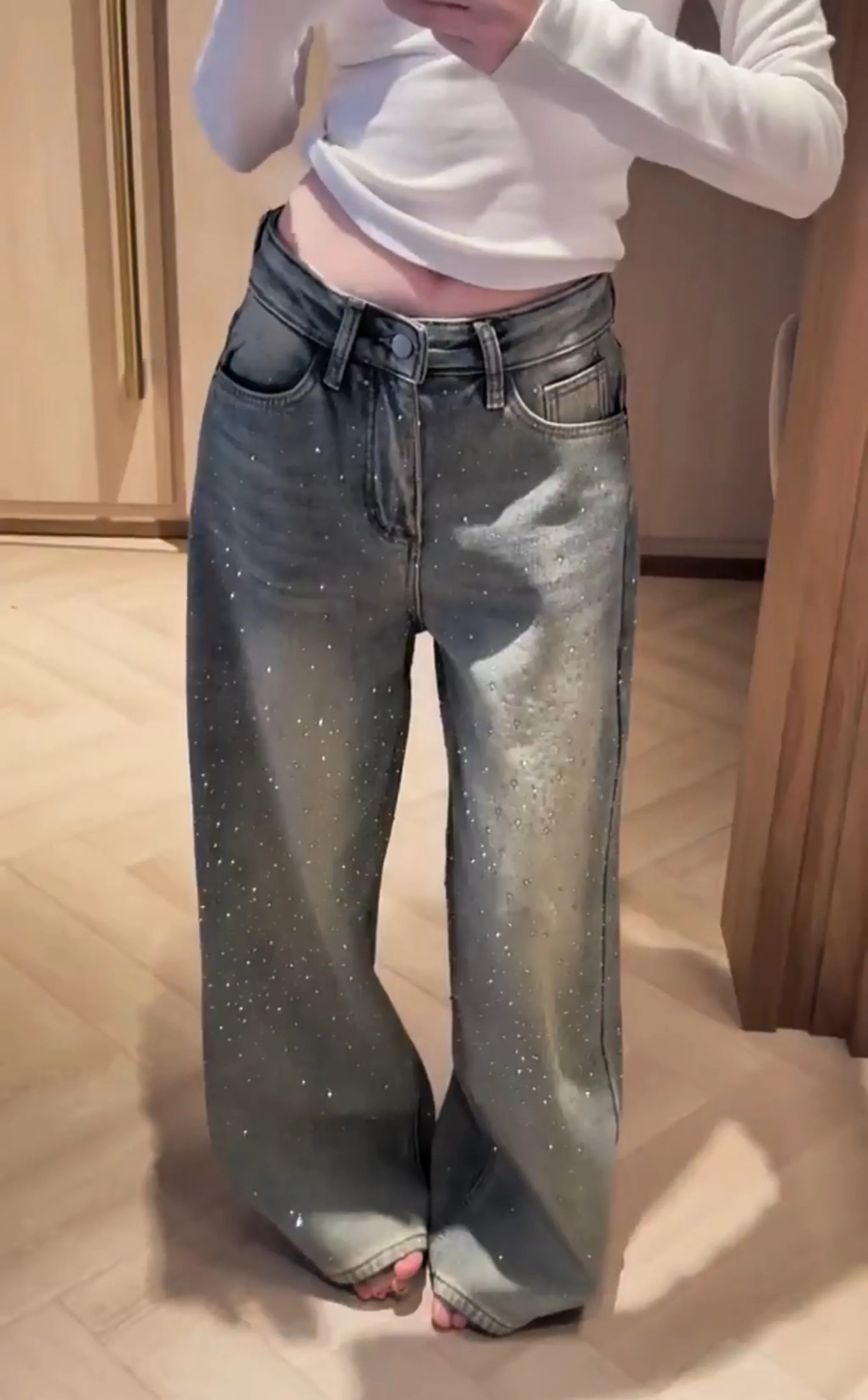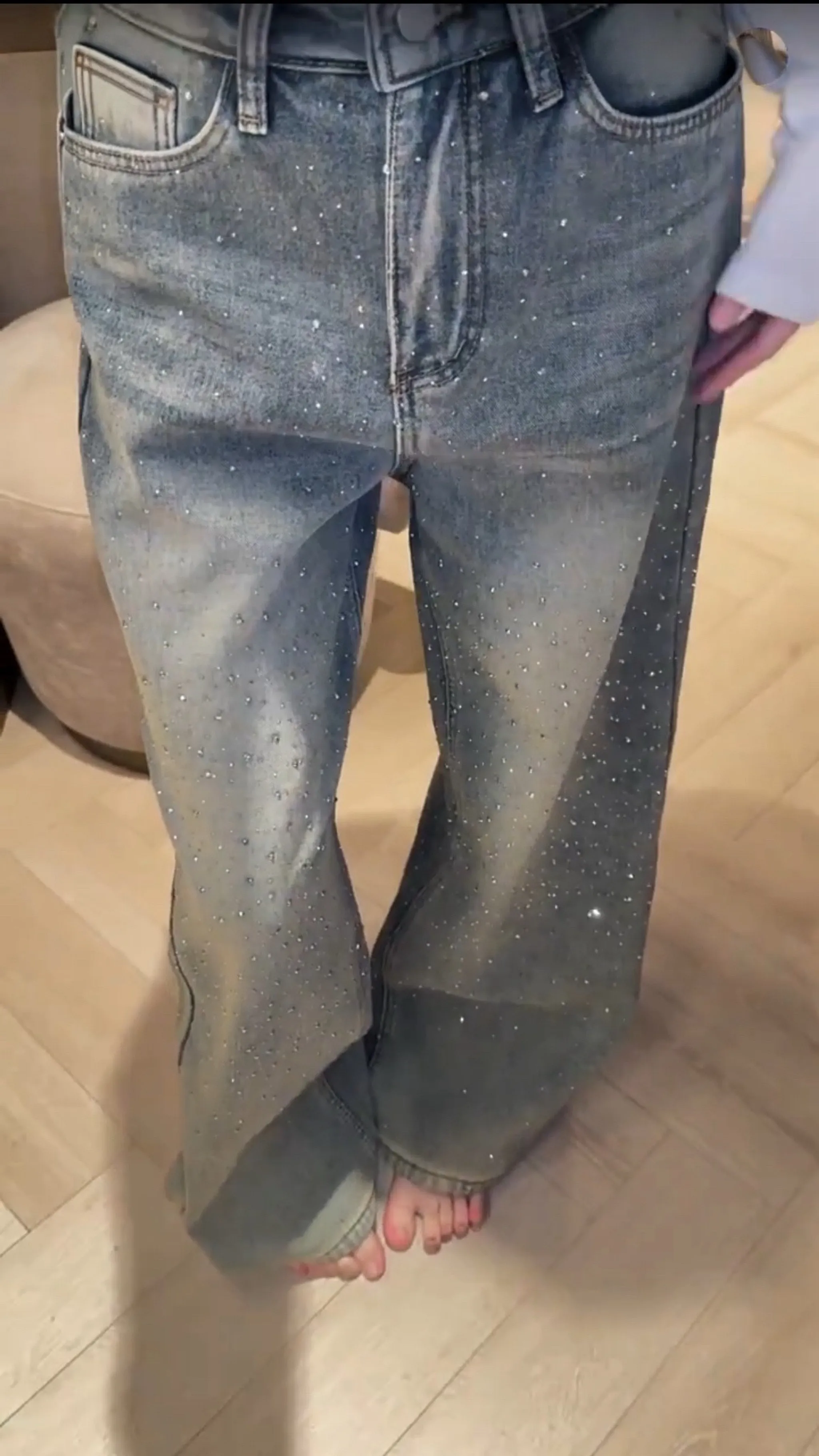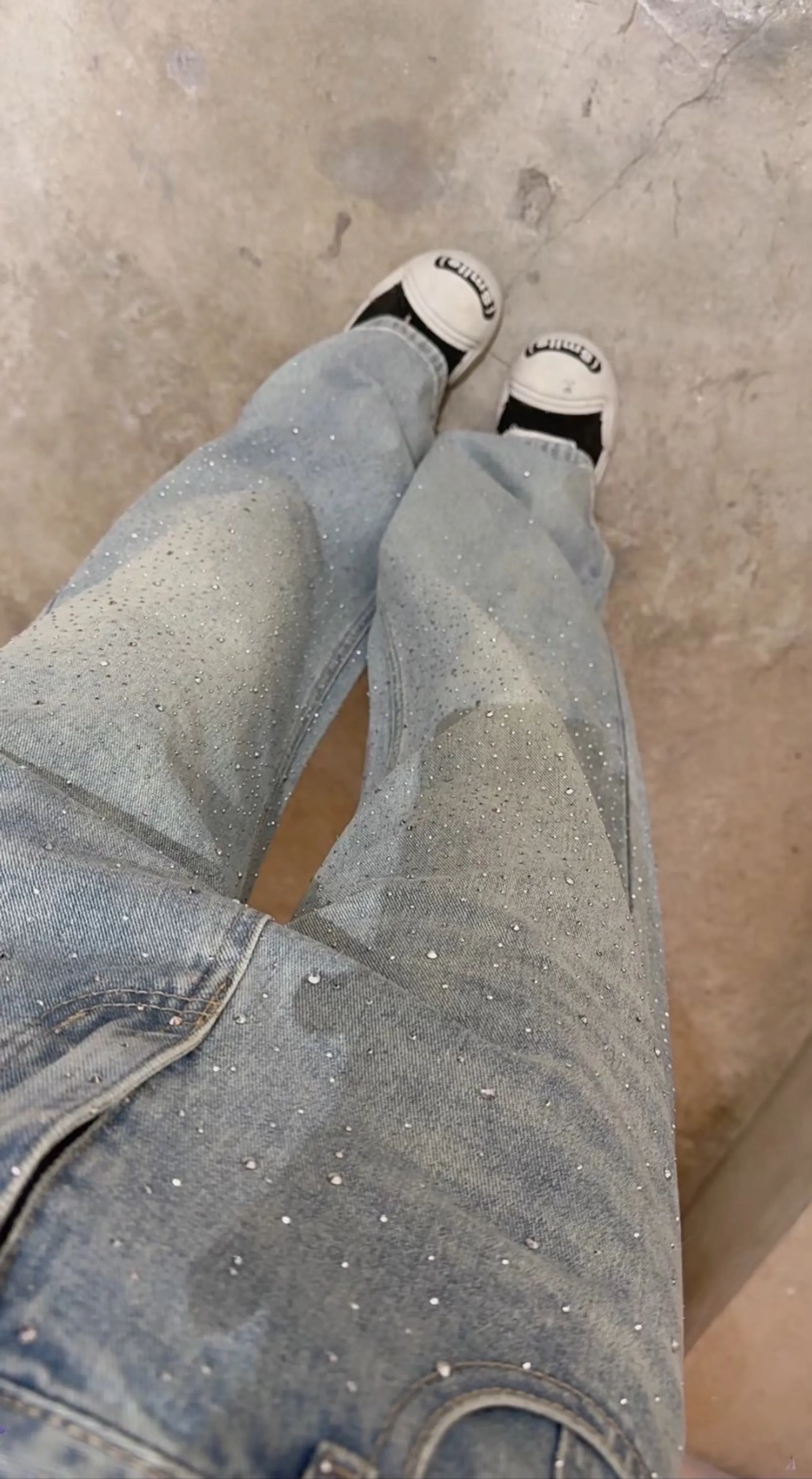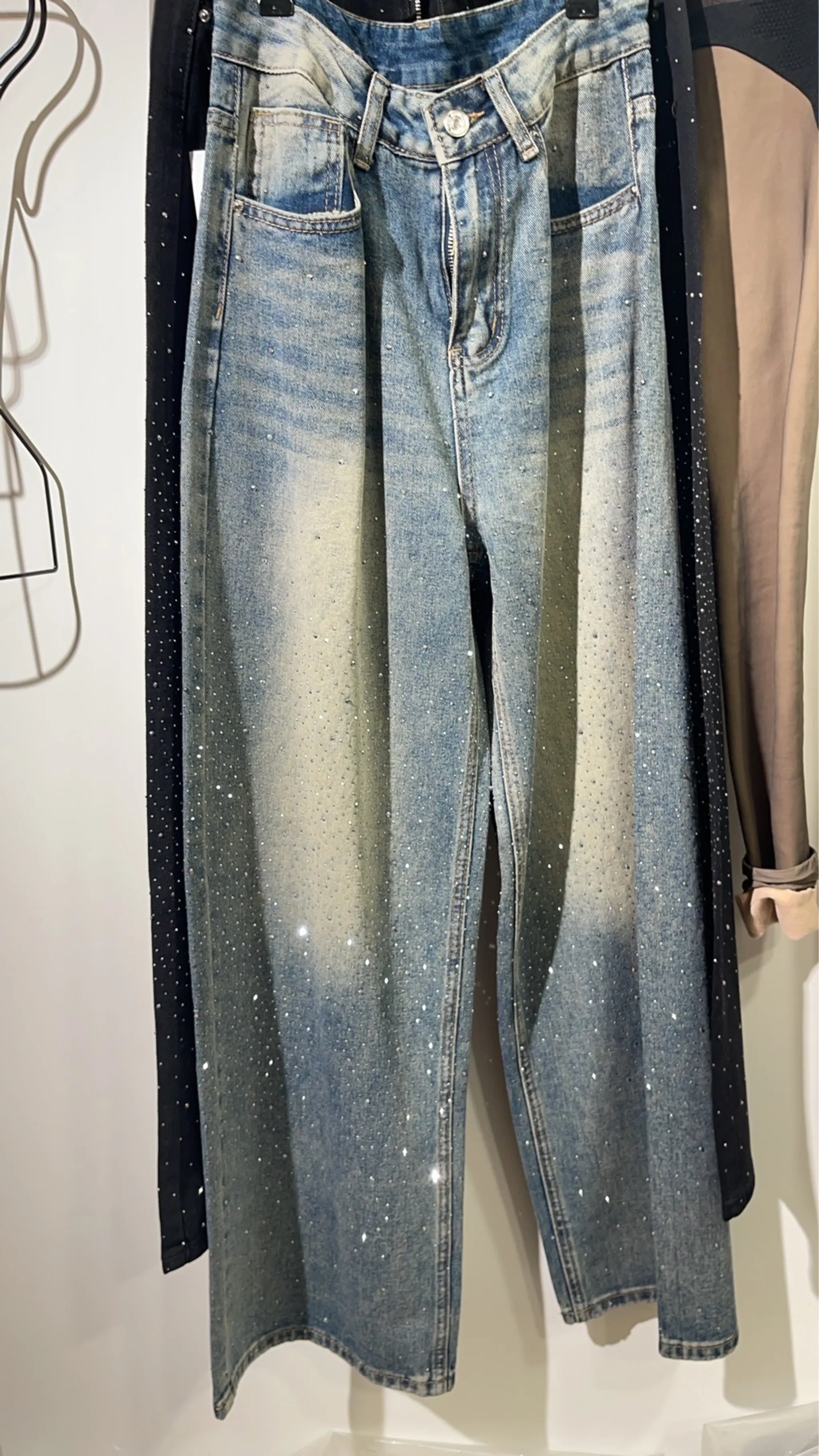 高磅鑽鑽牛仔直筒褲