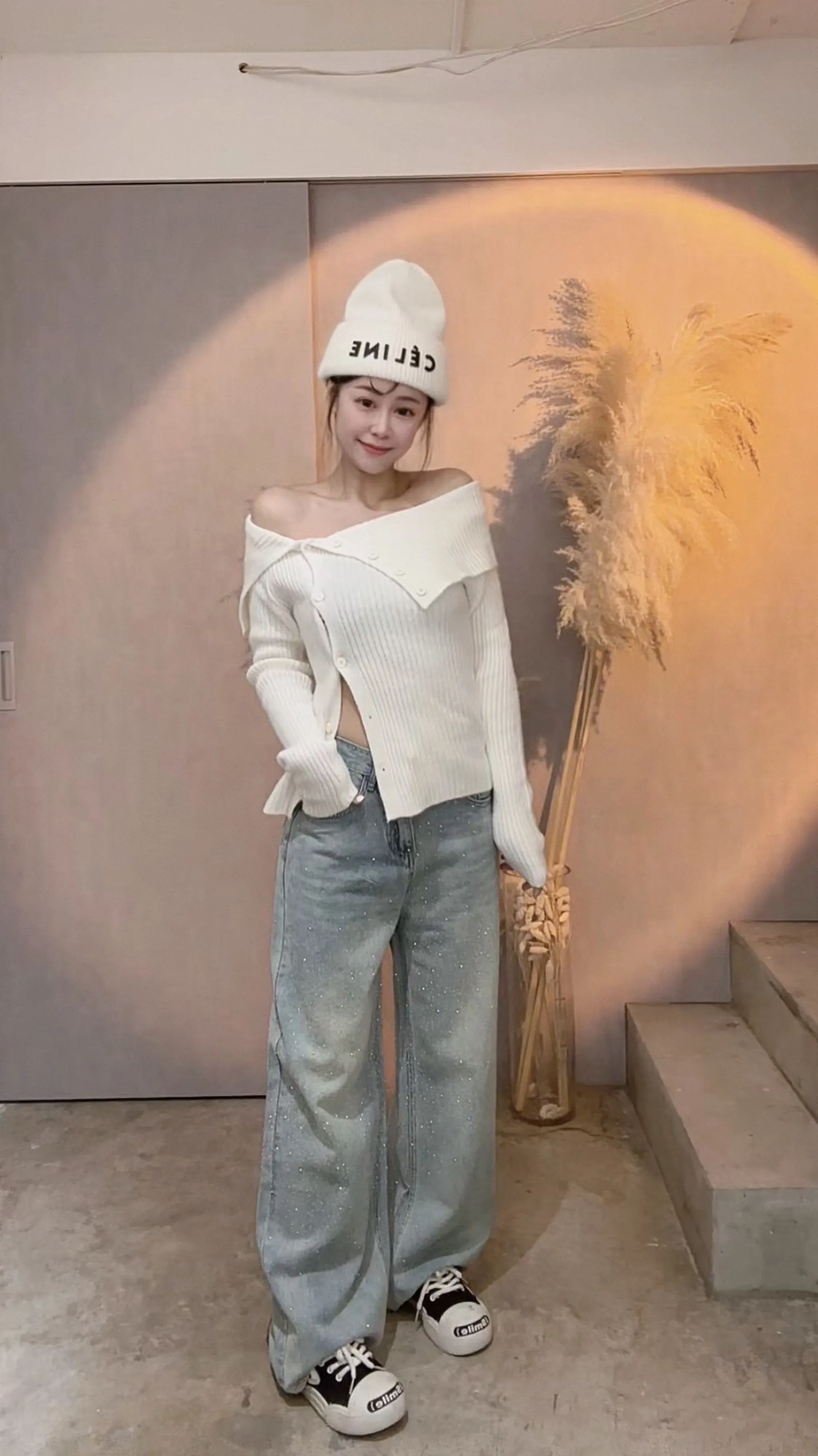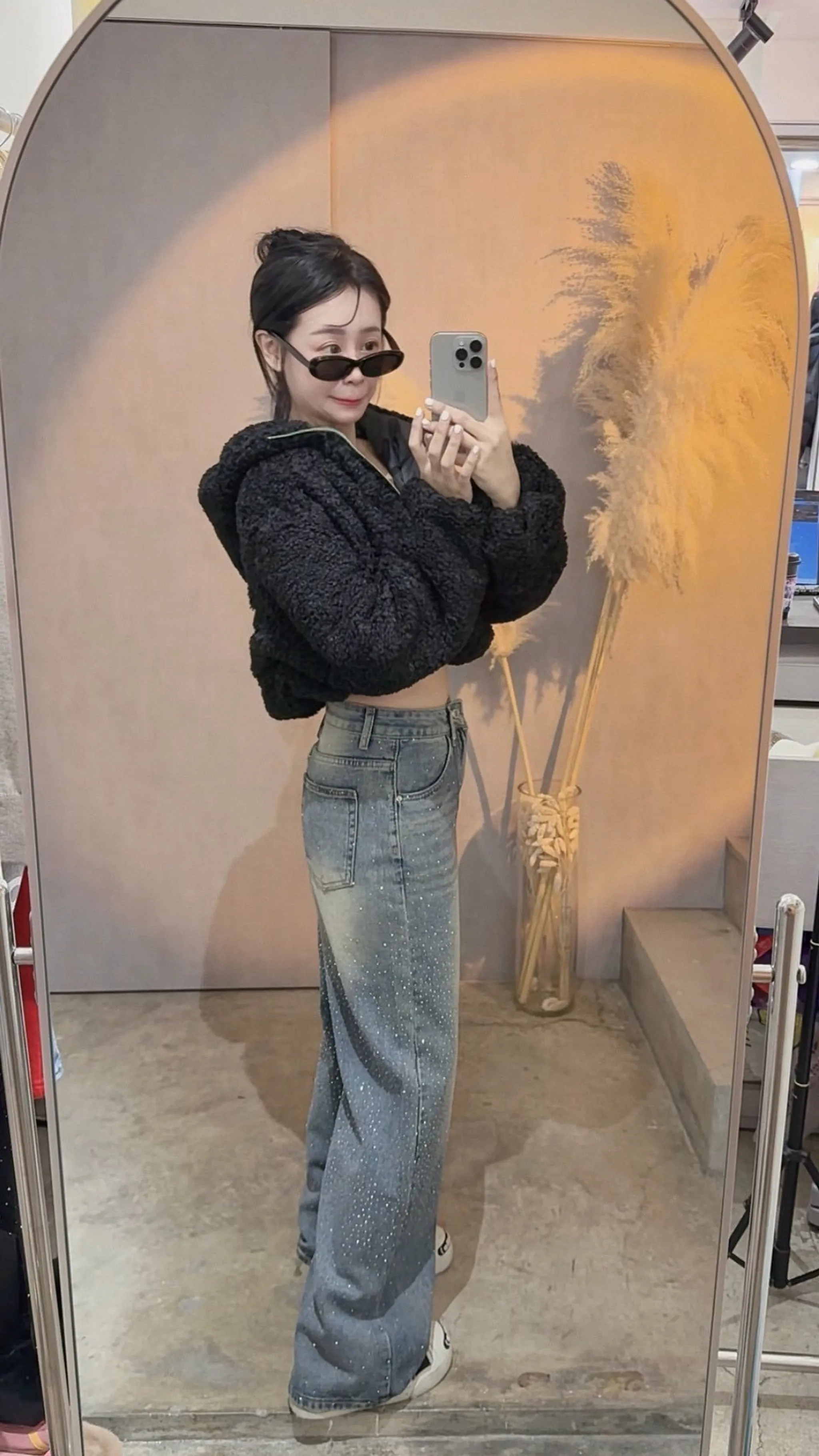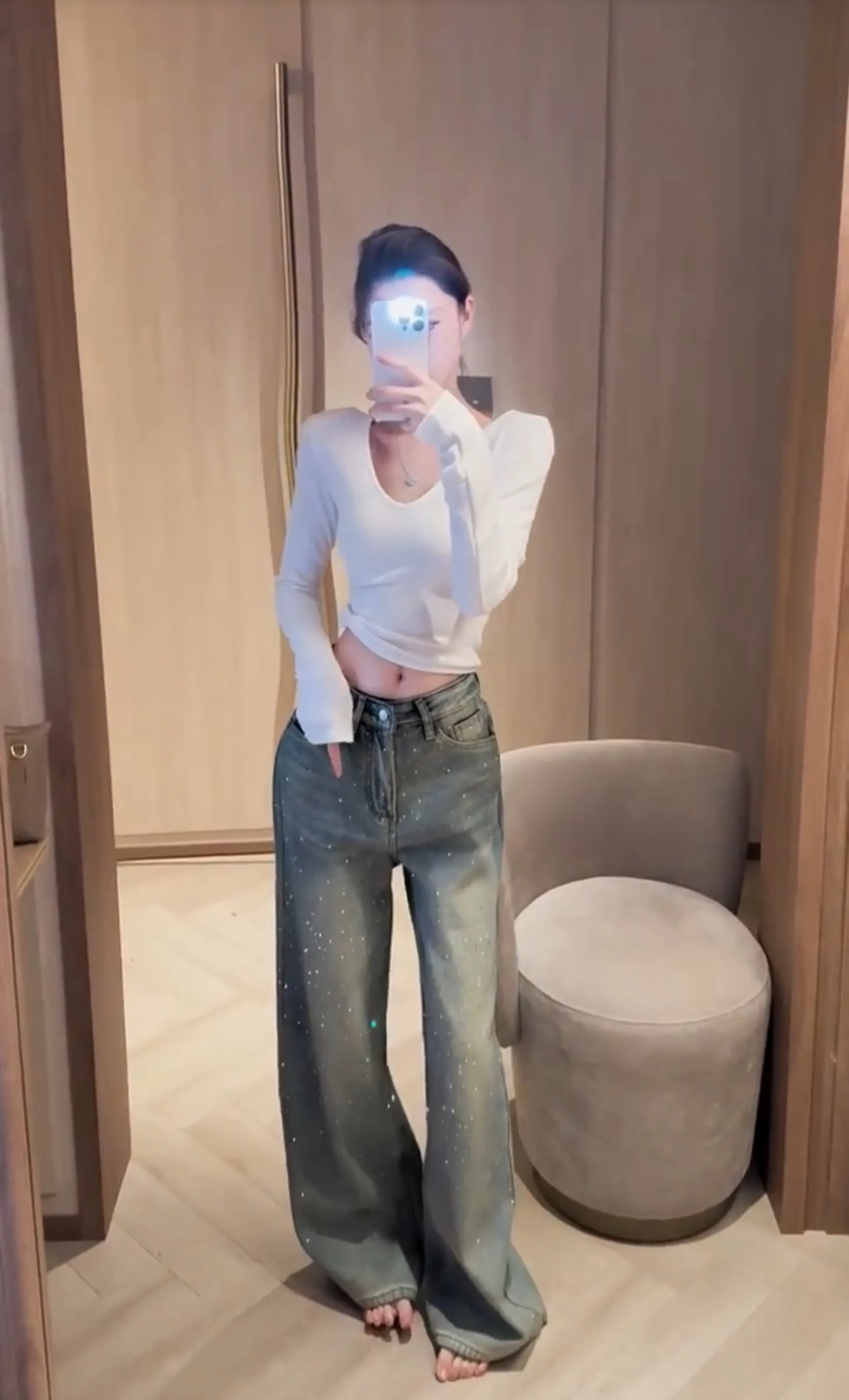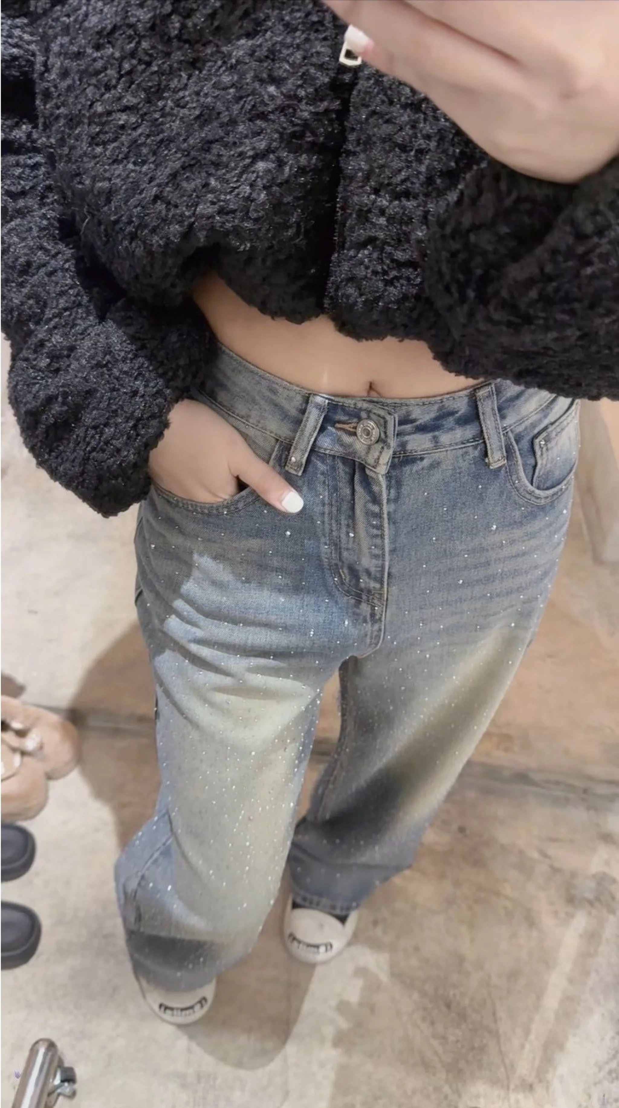 高磅鑽鑽牛仔直筒褲