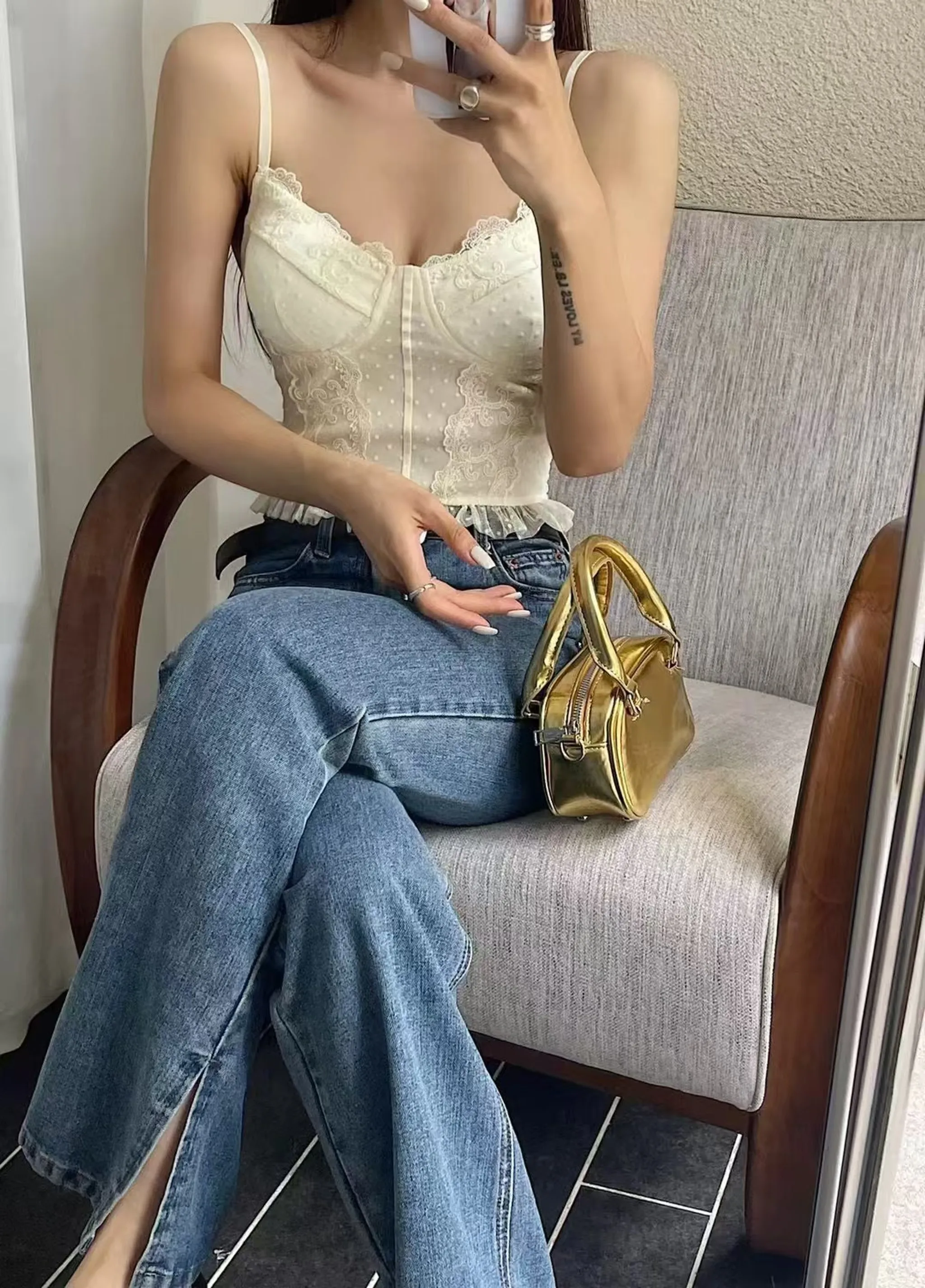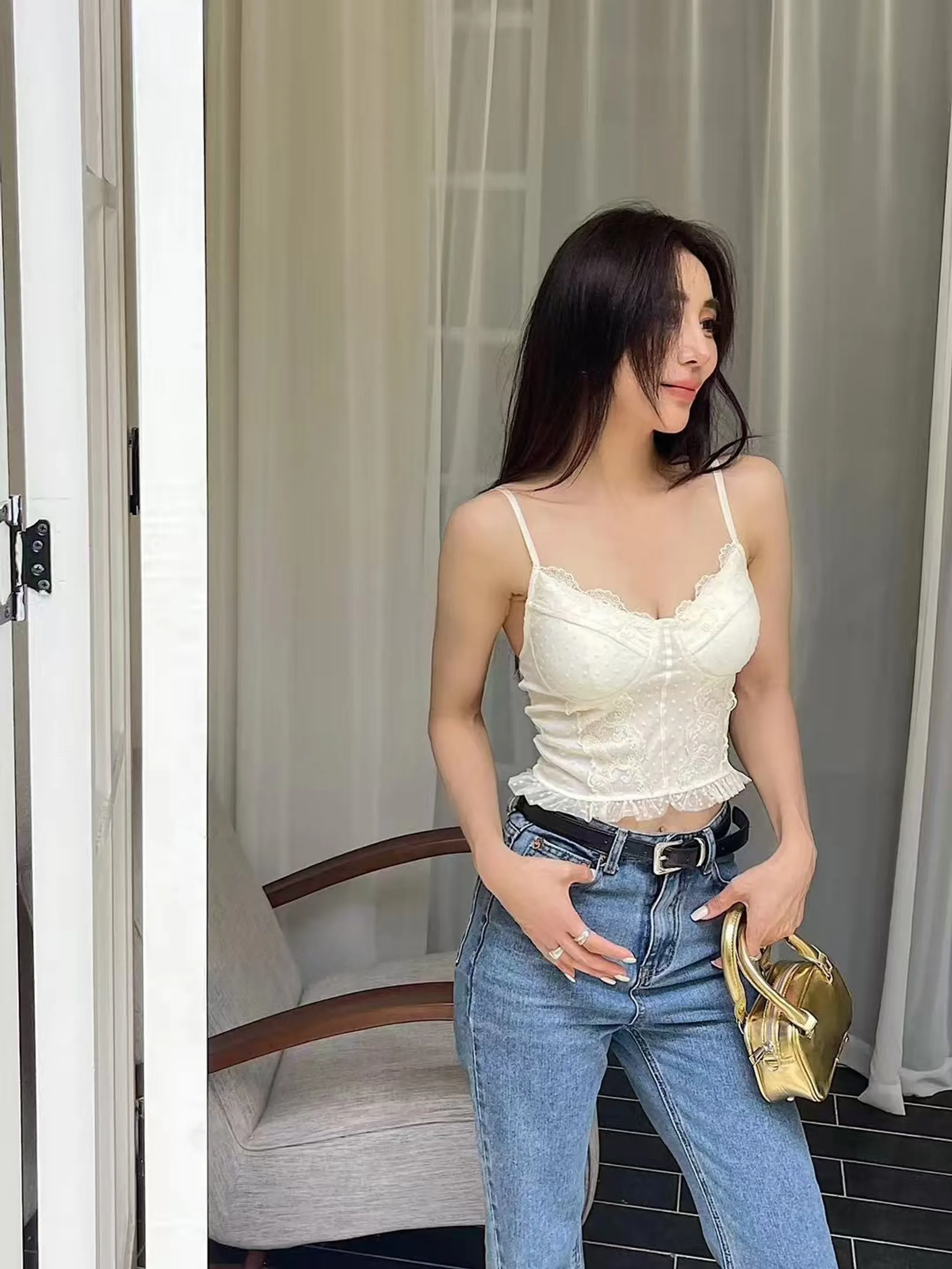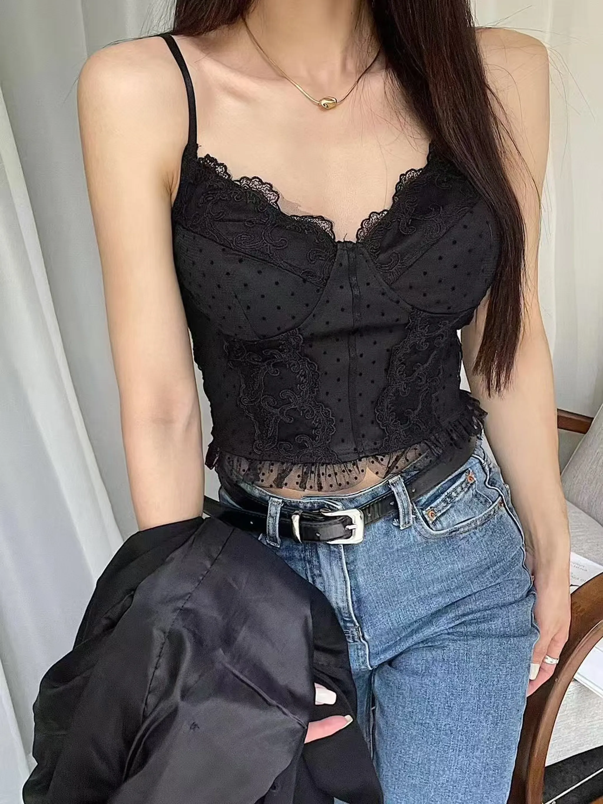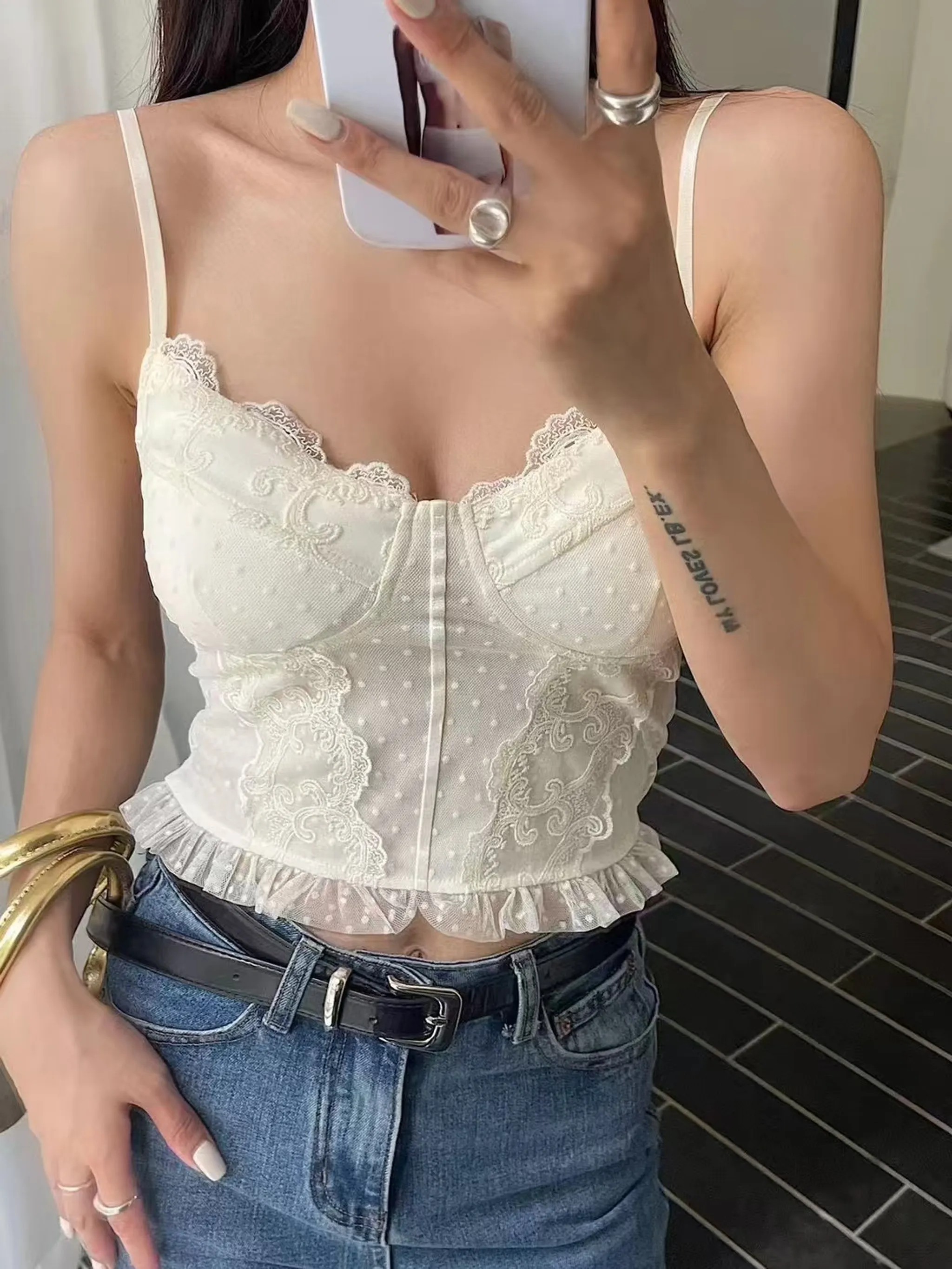 4/21收單-重工雕花蕾絲背心(有彈性)