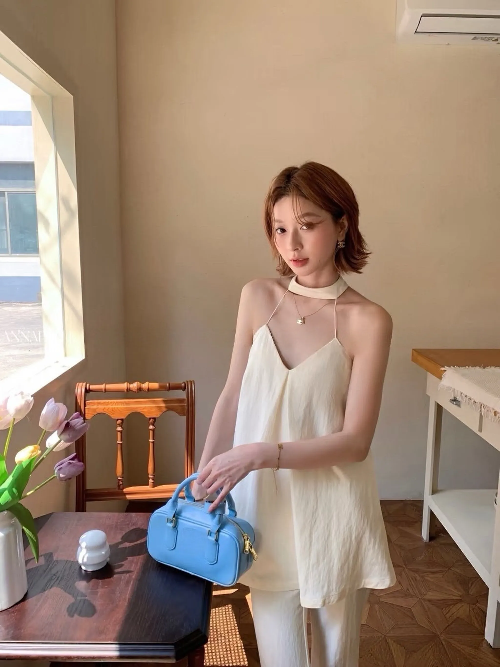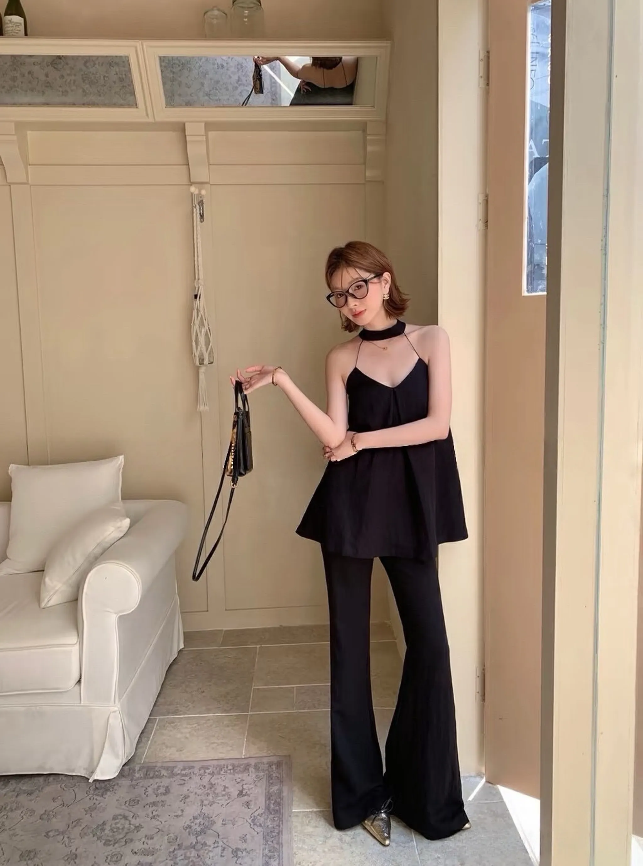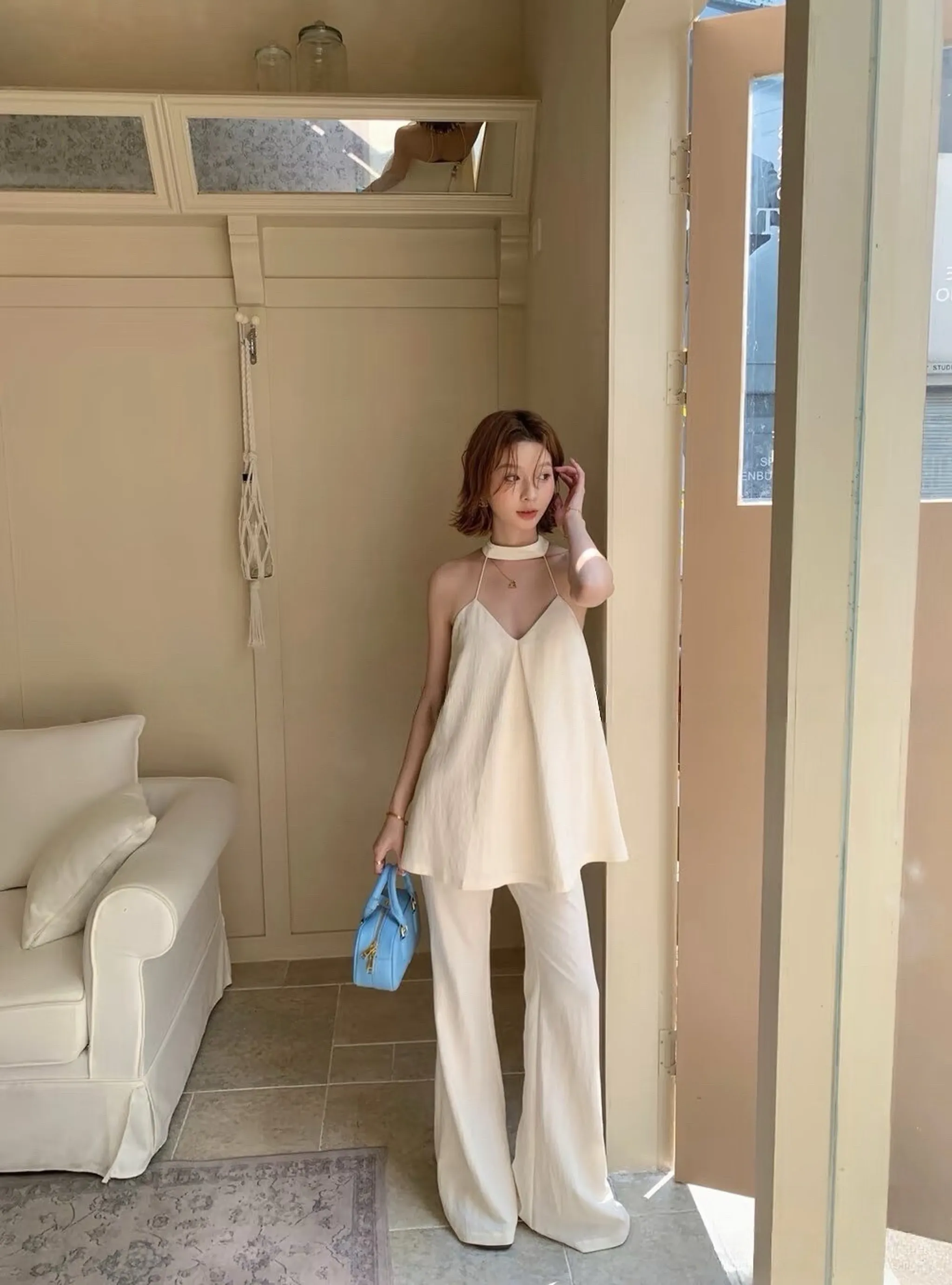 4/19收單-吸睛套裝!!法式掛脖喇叭褲SET
