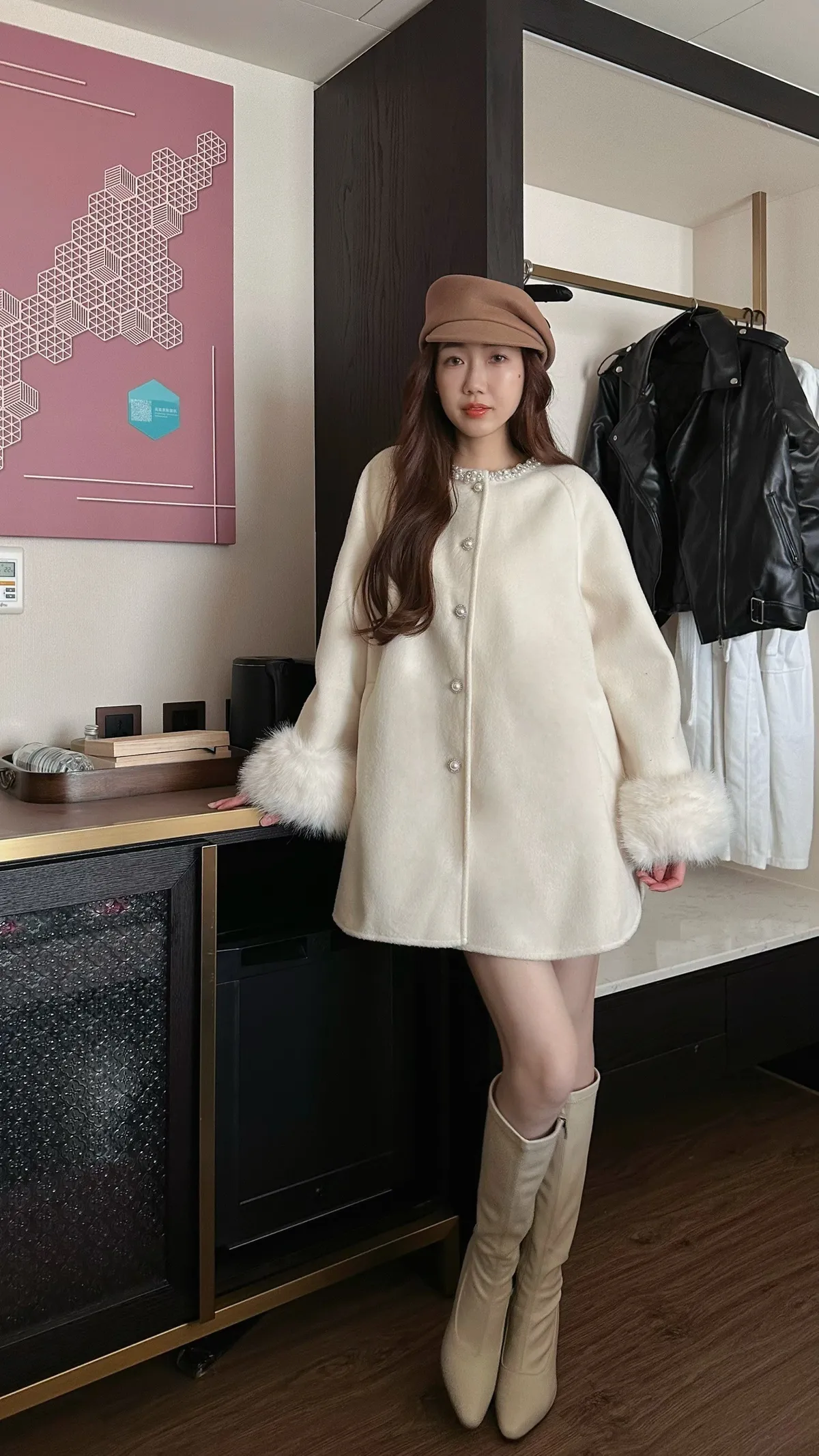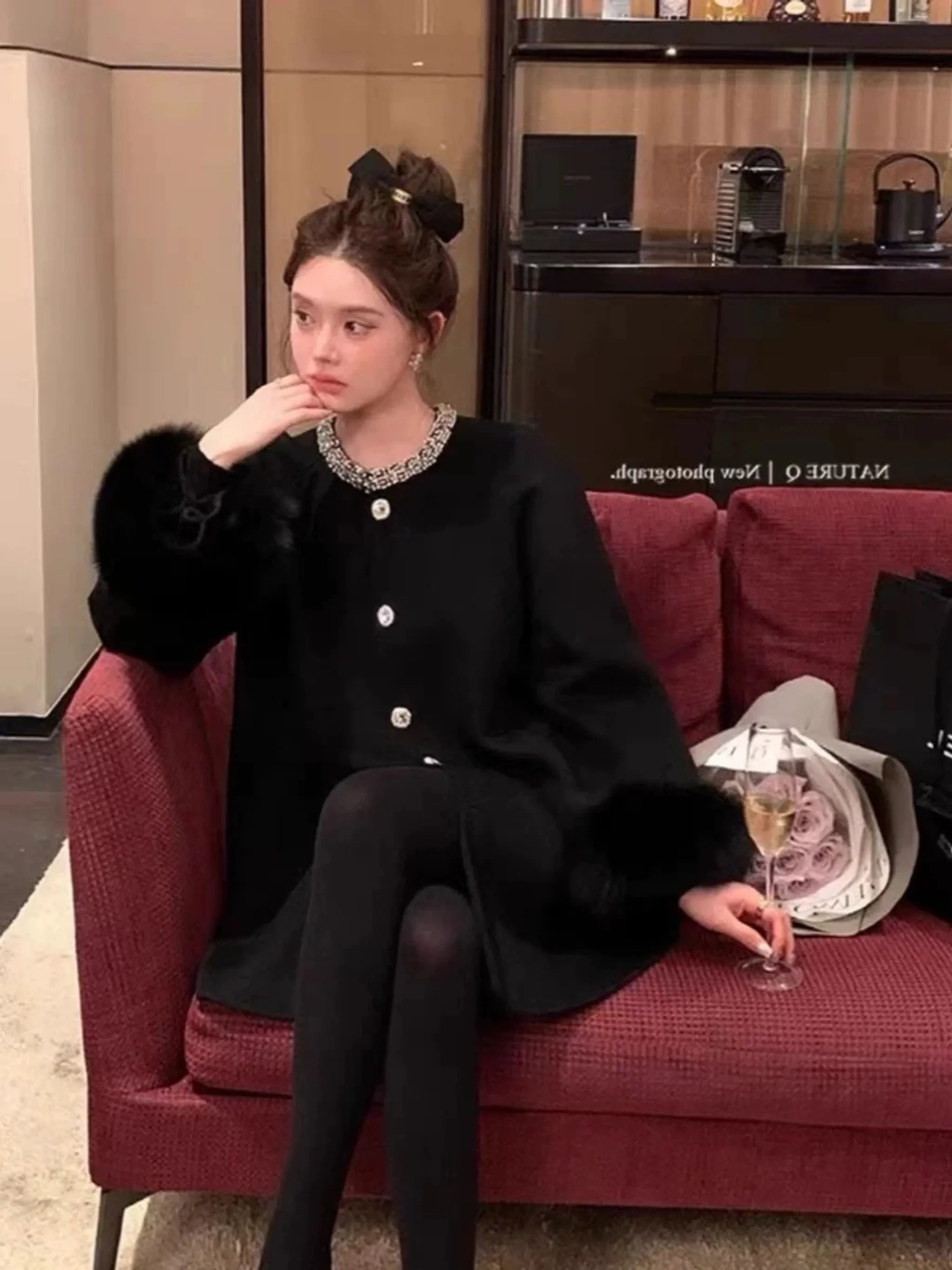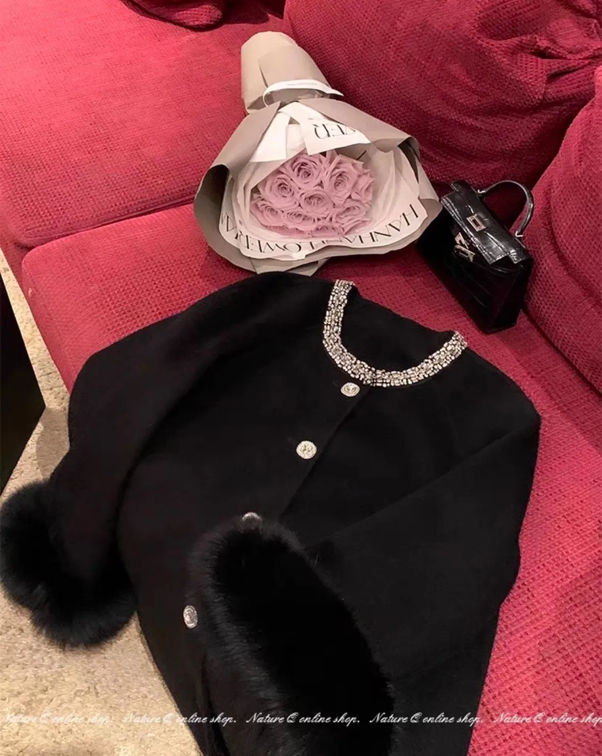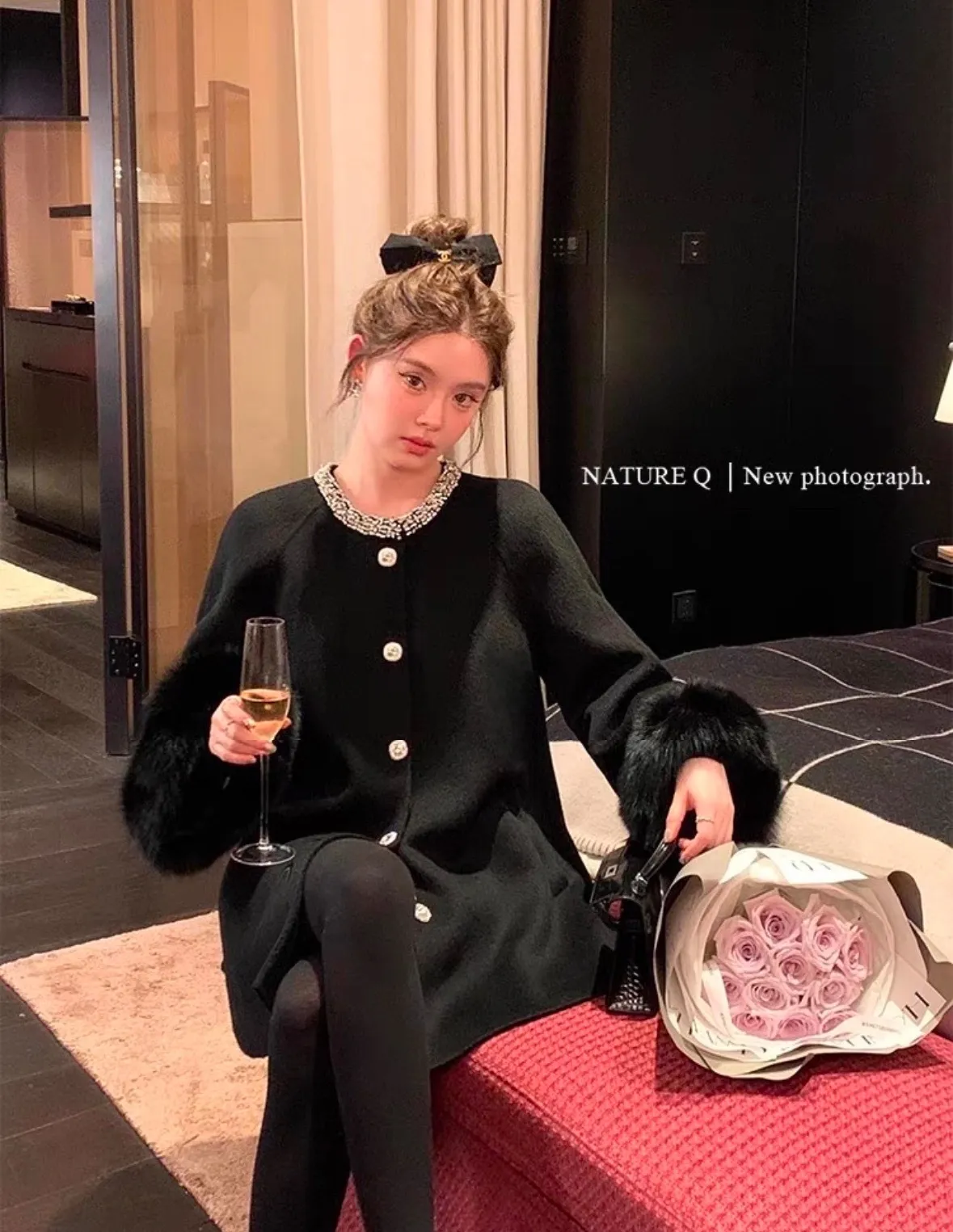 熱銷爆款-名媛毛毛袖羊毛開衫短洋(也能當外套優)