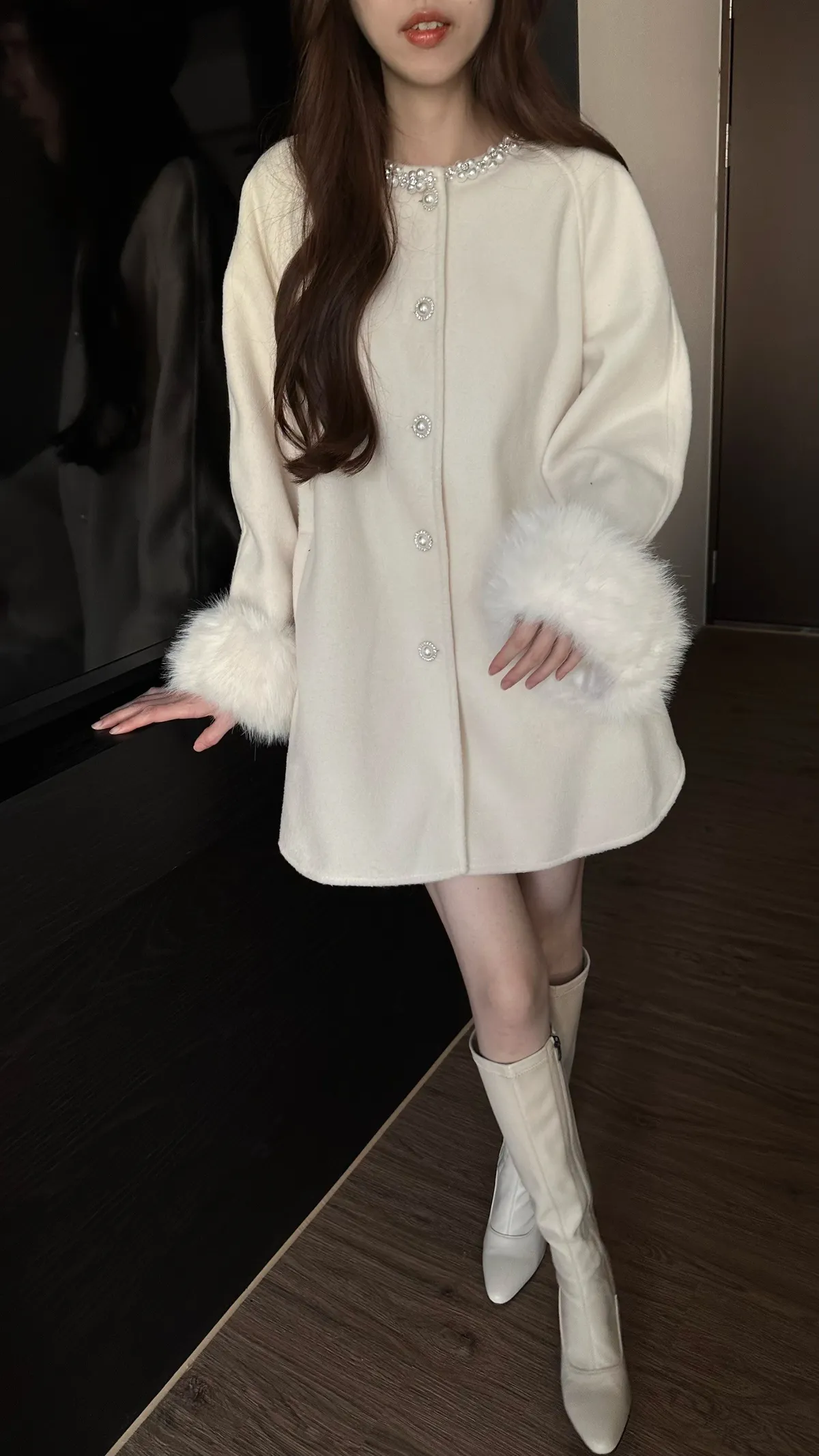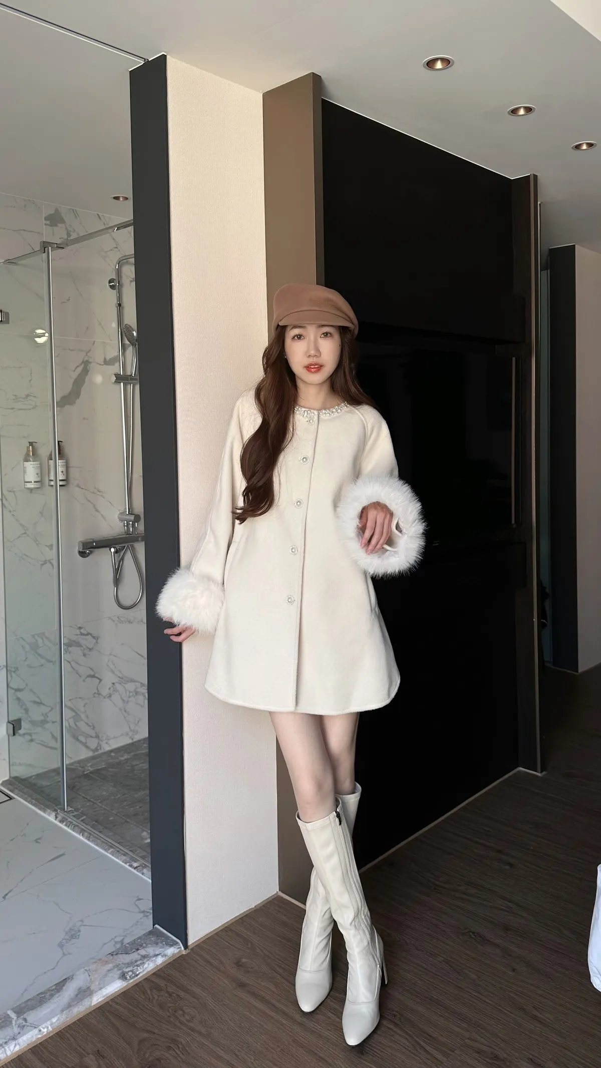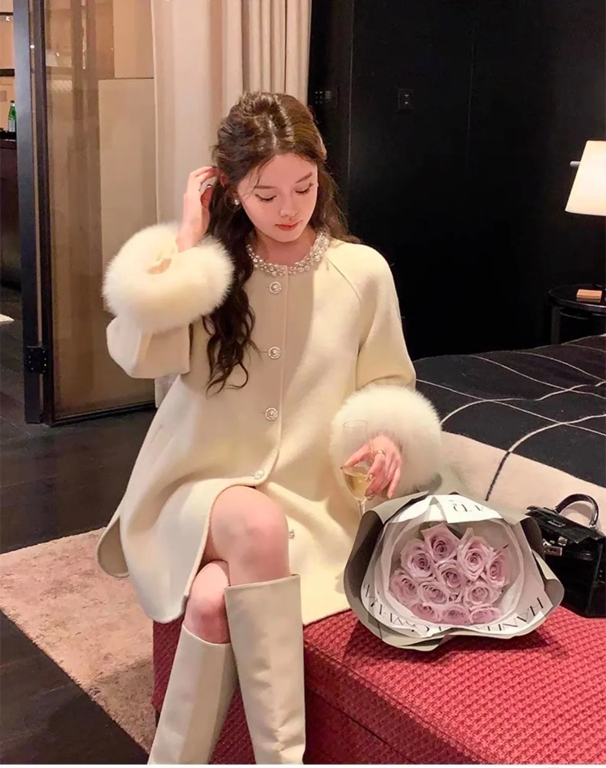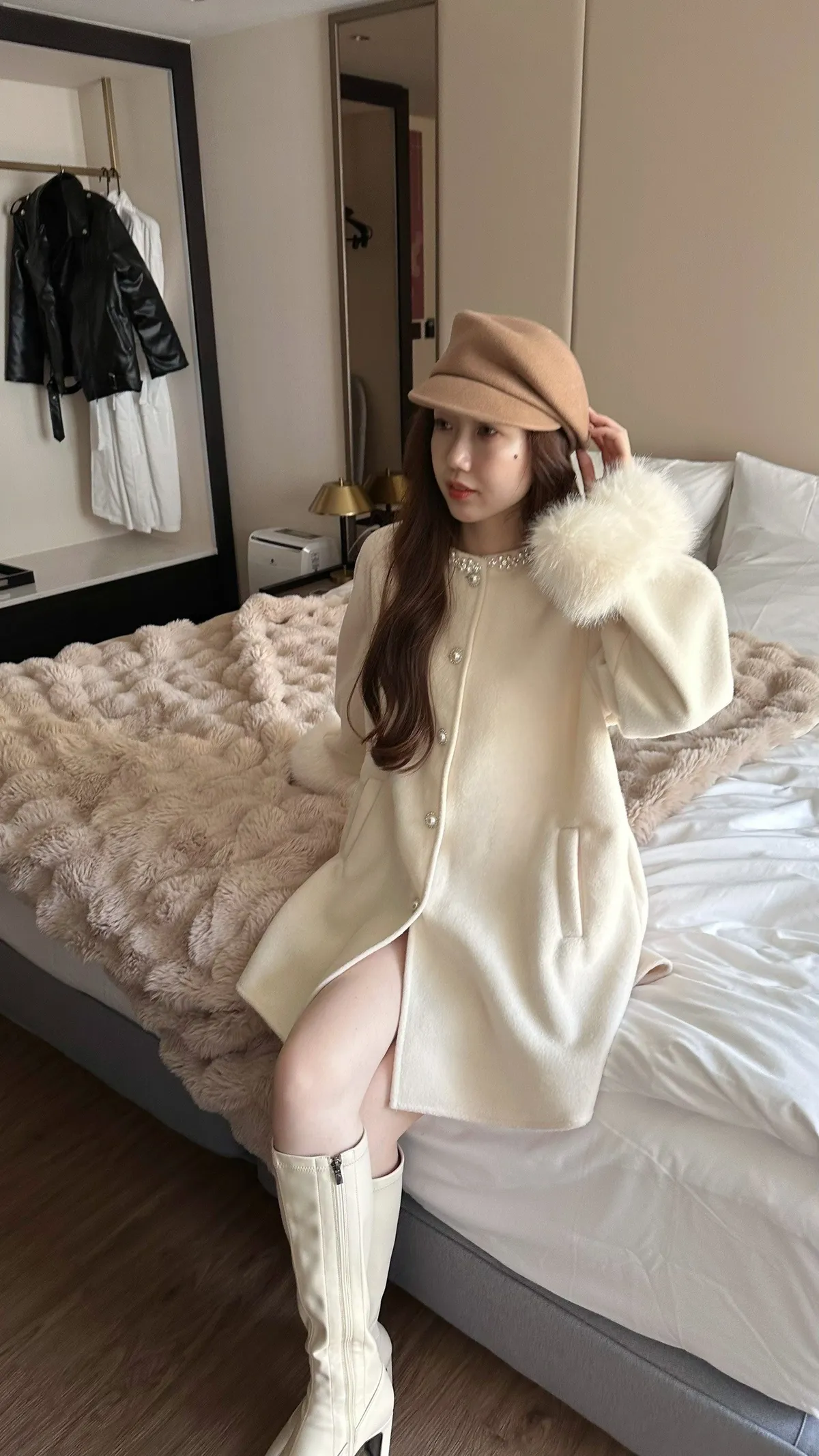 熱銷爆款-名媛毛毛袖羊毛開衫短洋(也能當外套優)
