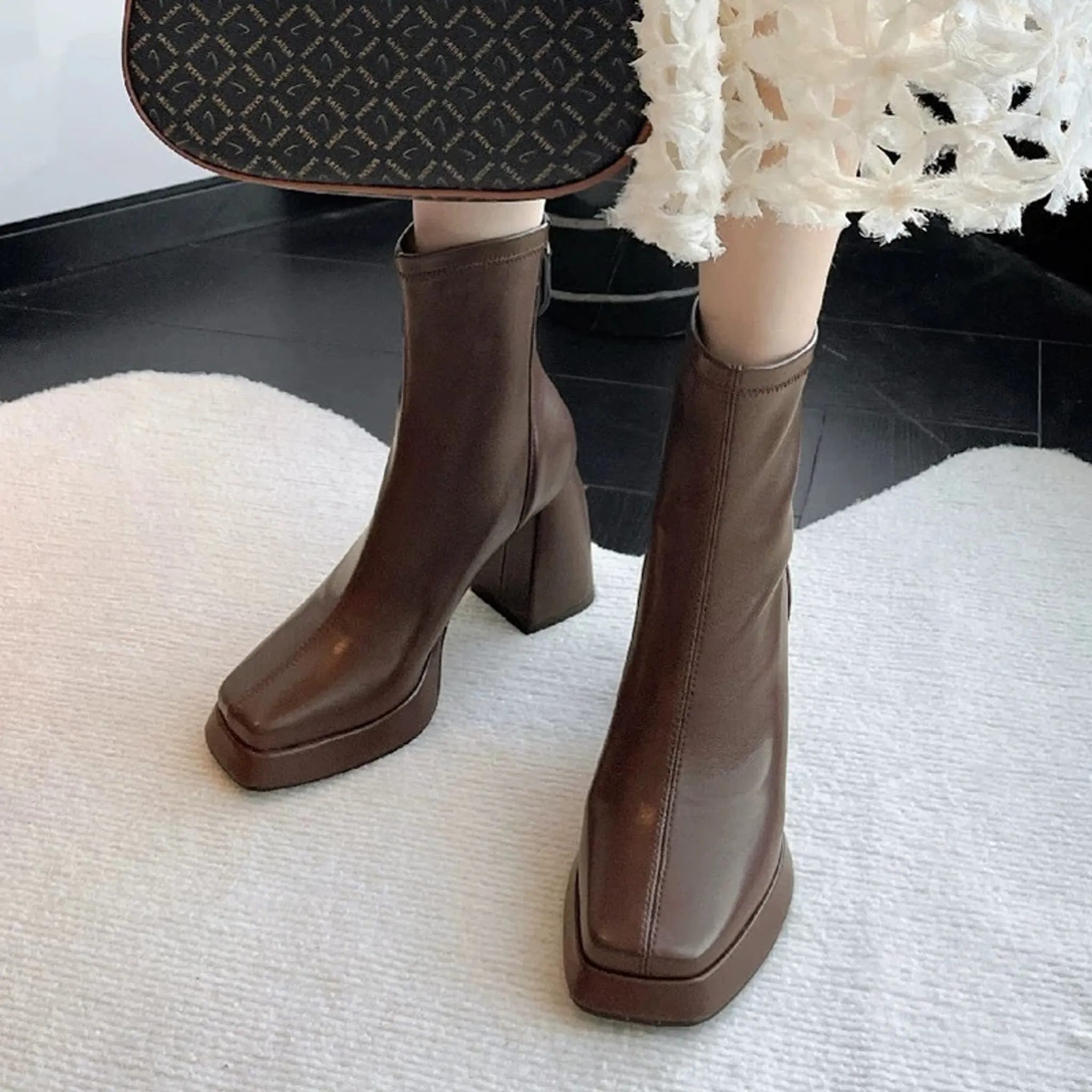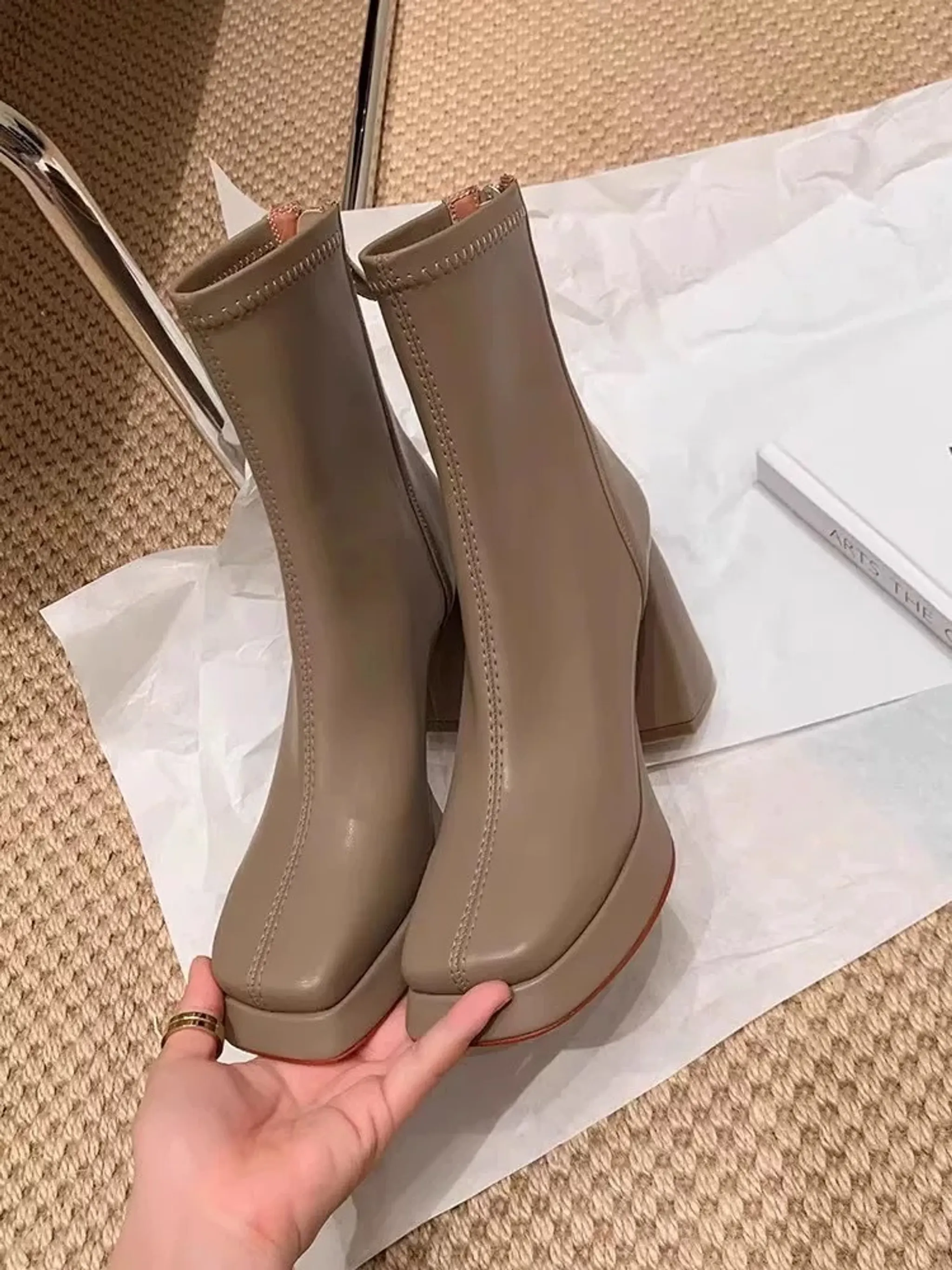 熱銷500雙 方頭粗跟短靴 (大推奶茶色)