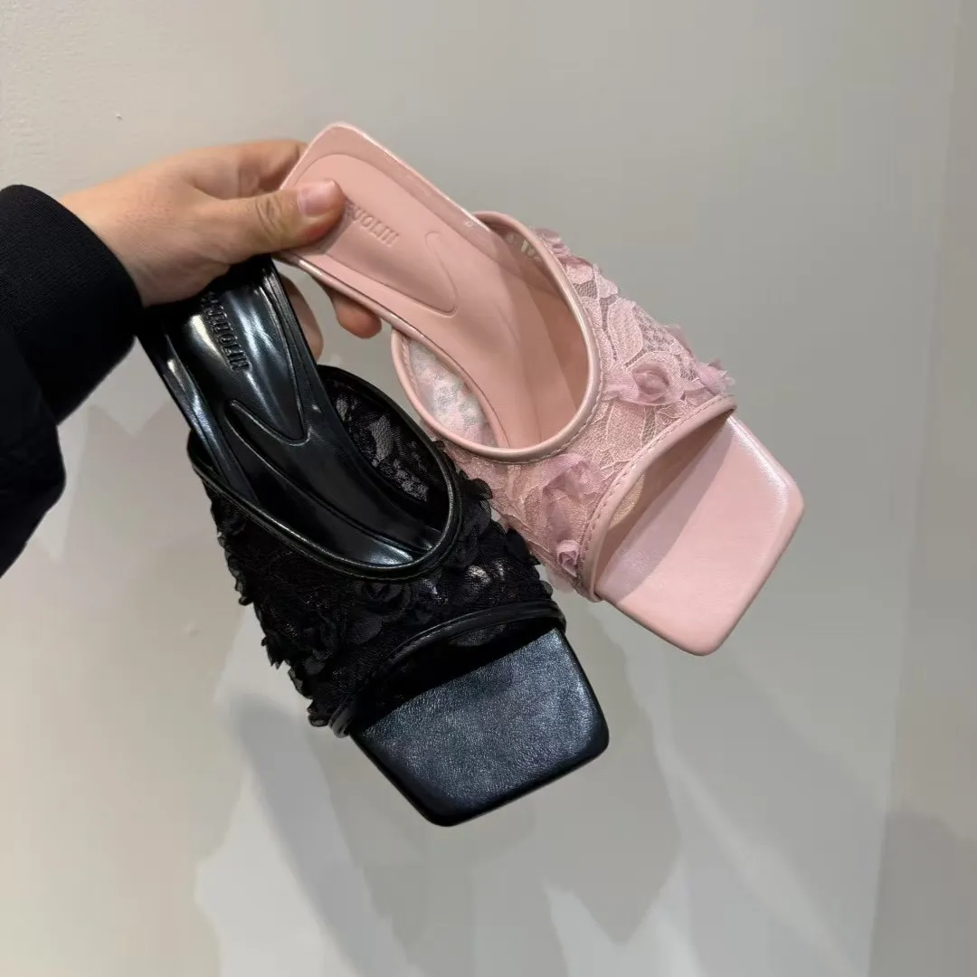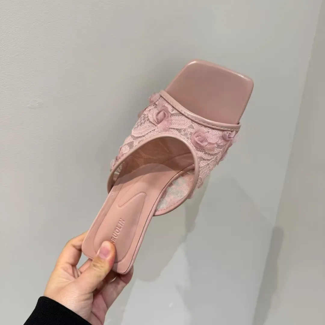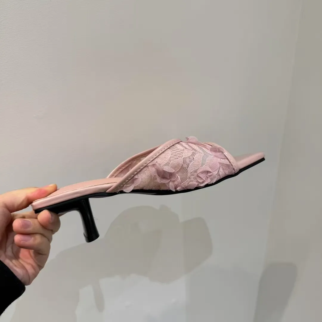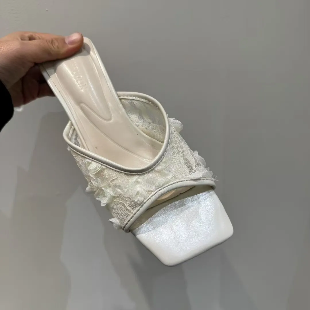 近看才看的到的美麗細節 蕾絲花花低跟鞋