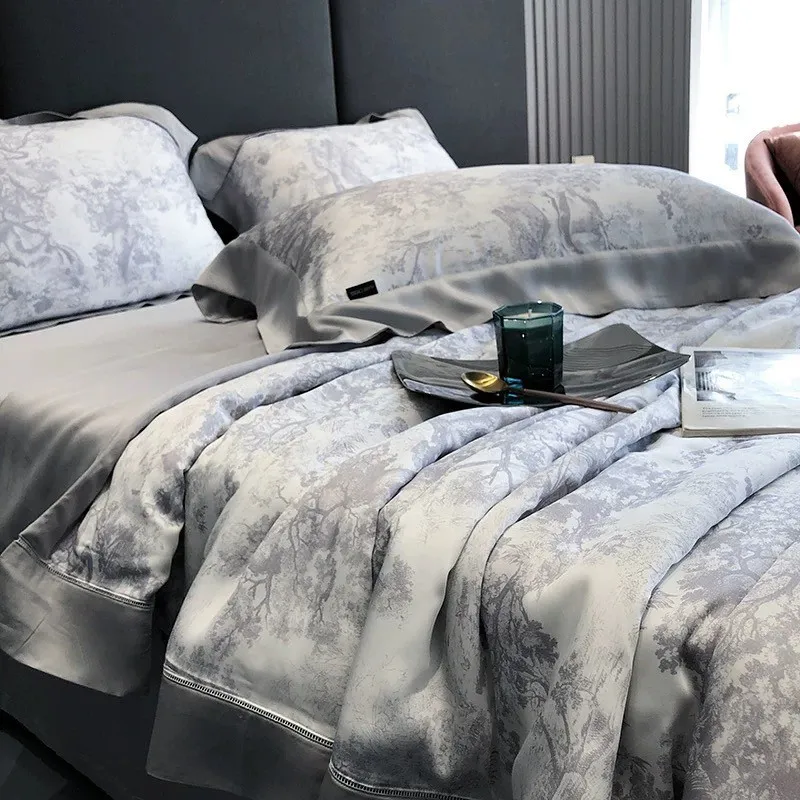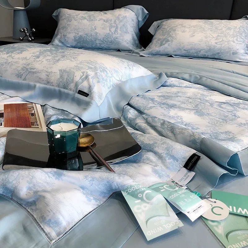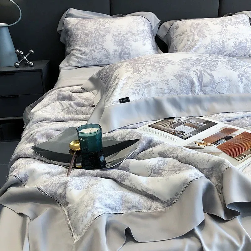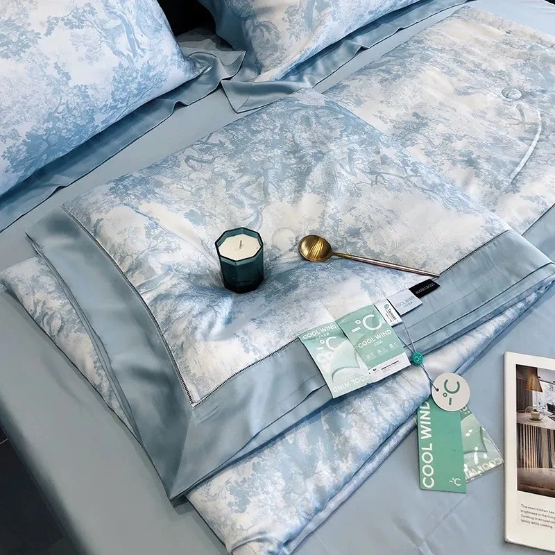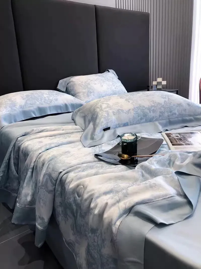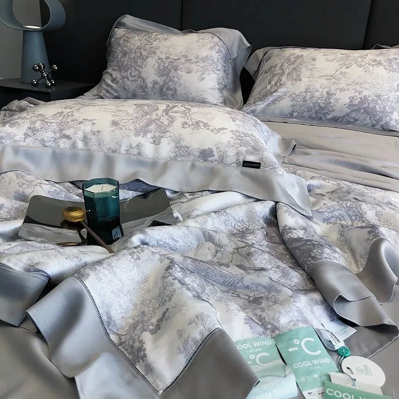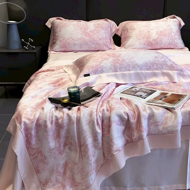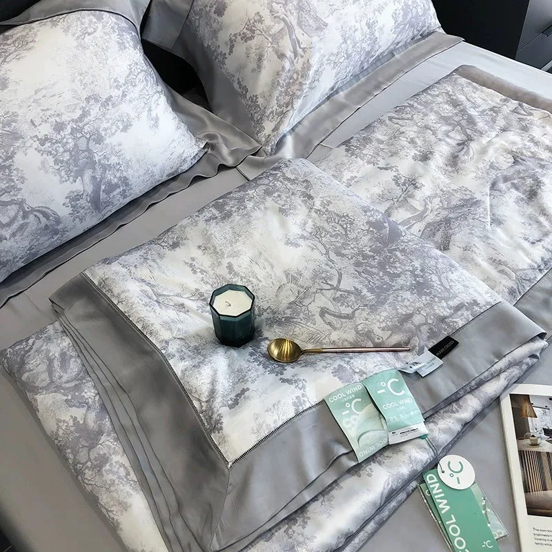 預購-奢華晨曦天絲100支「涼被」印花四件套組
