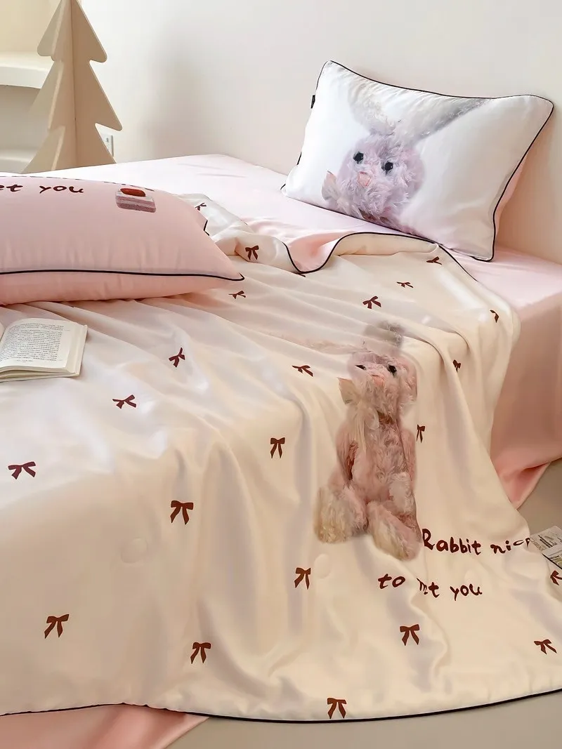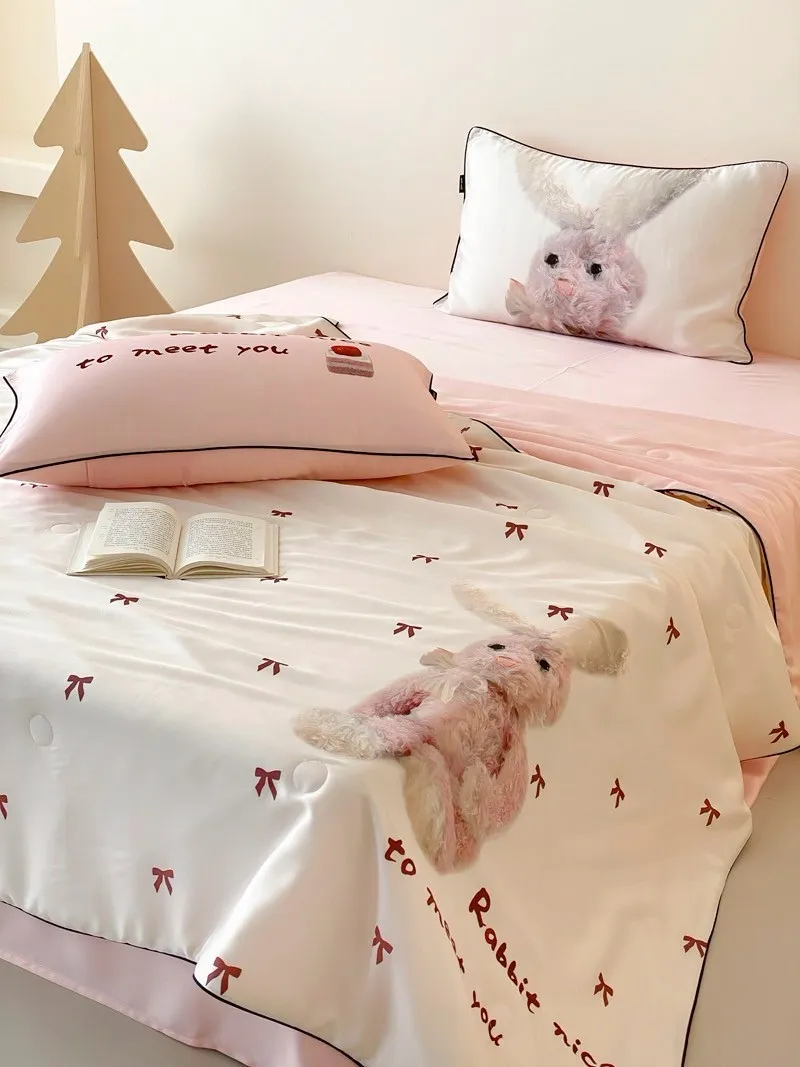 預購-熊熊兔兔天絲80支「涼被」四件套組