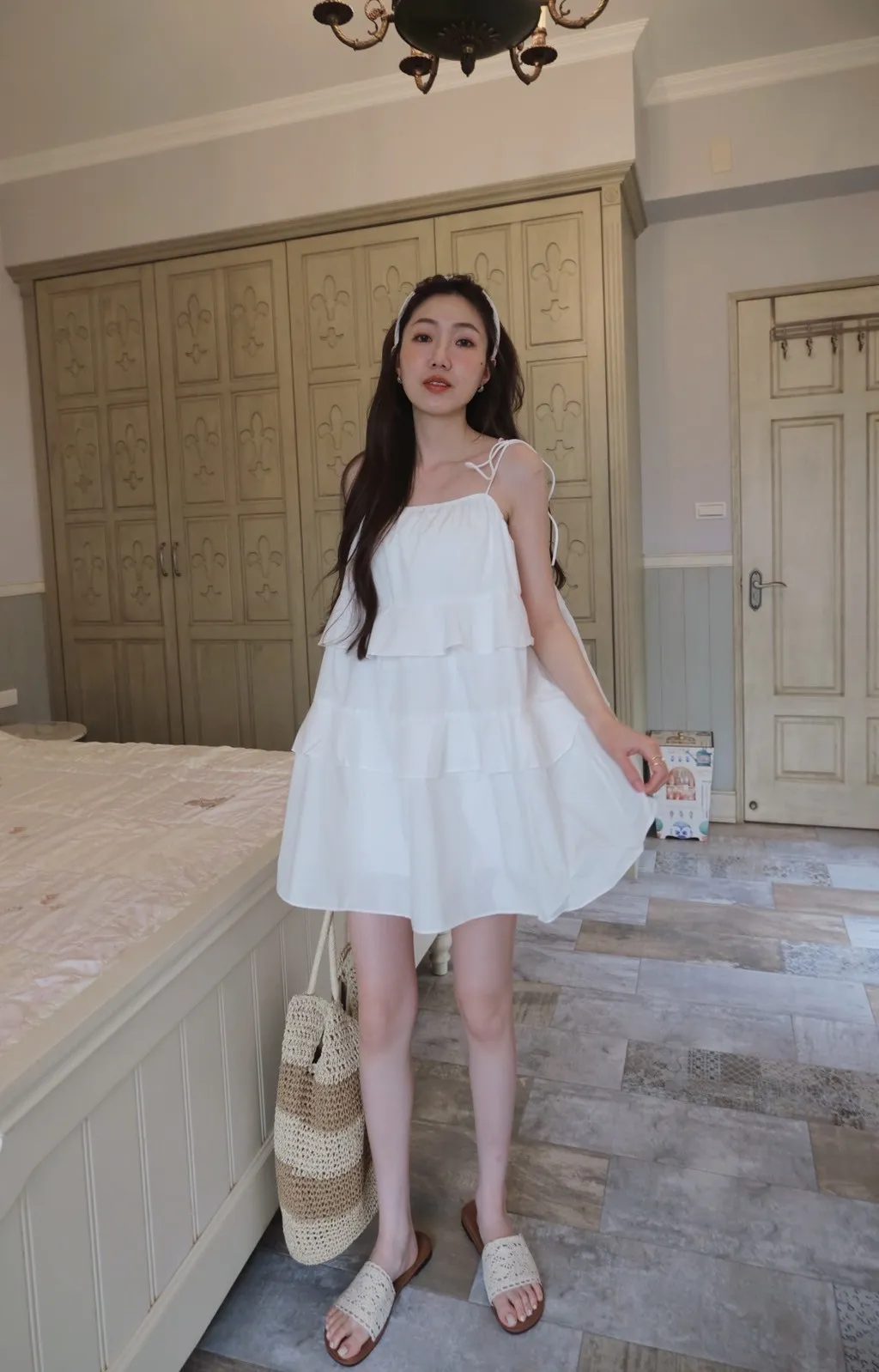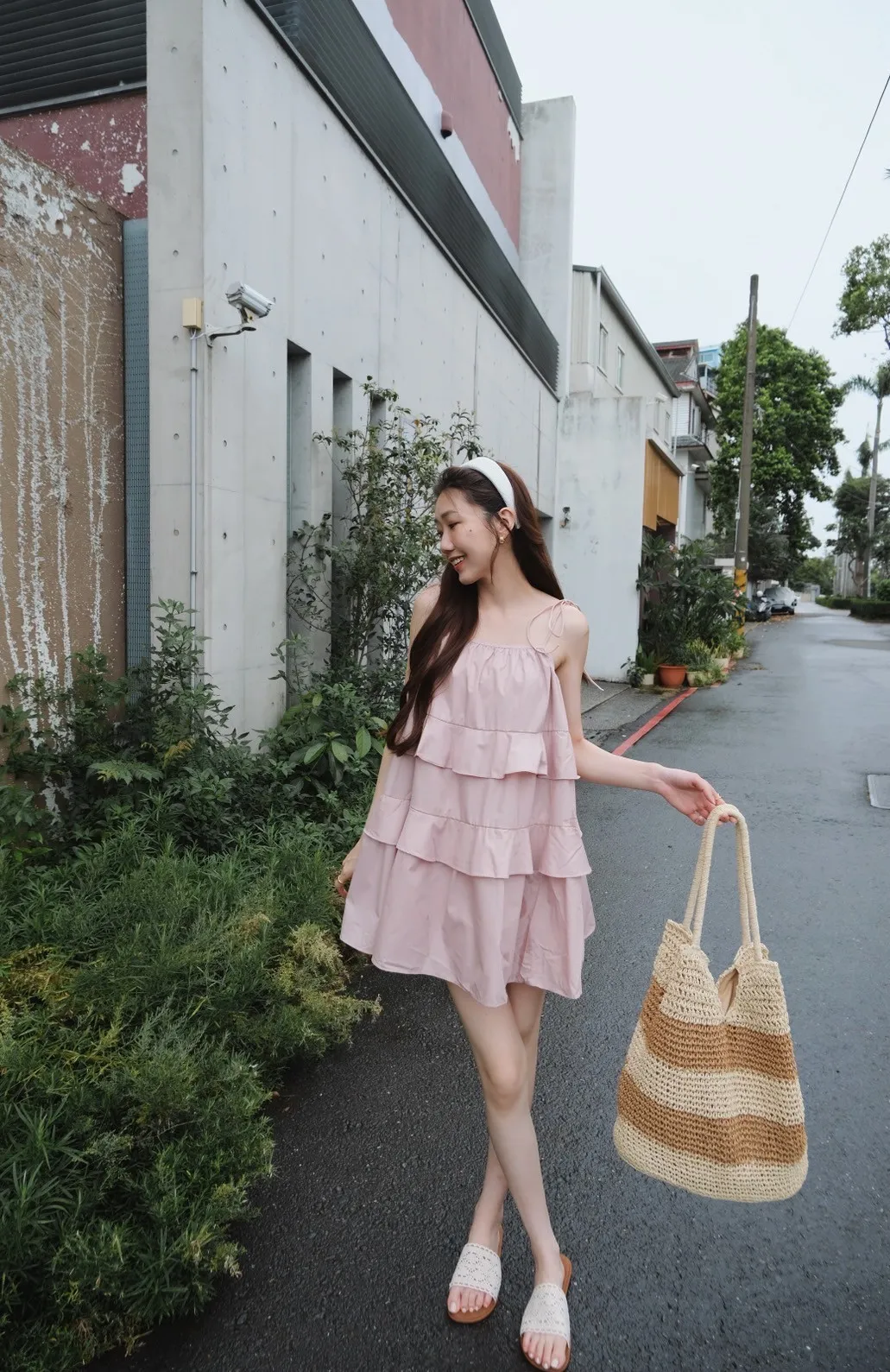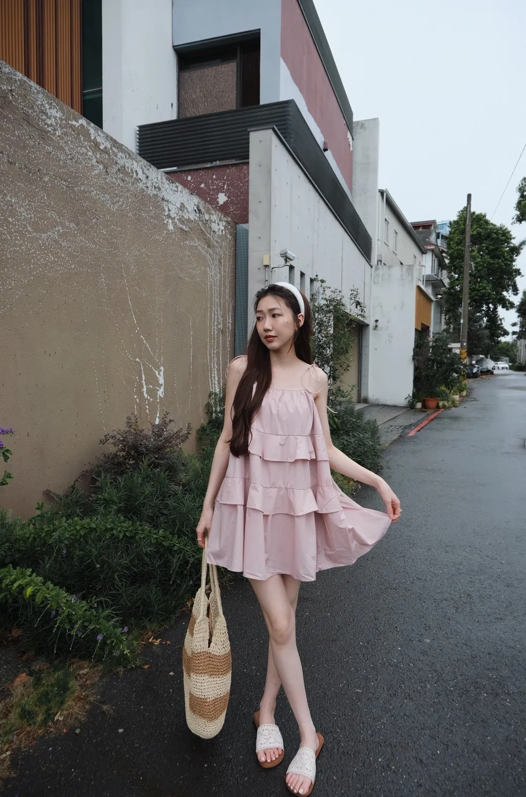 廠商獨家!肩帶可調整 綁帶蛋糕短洋