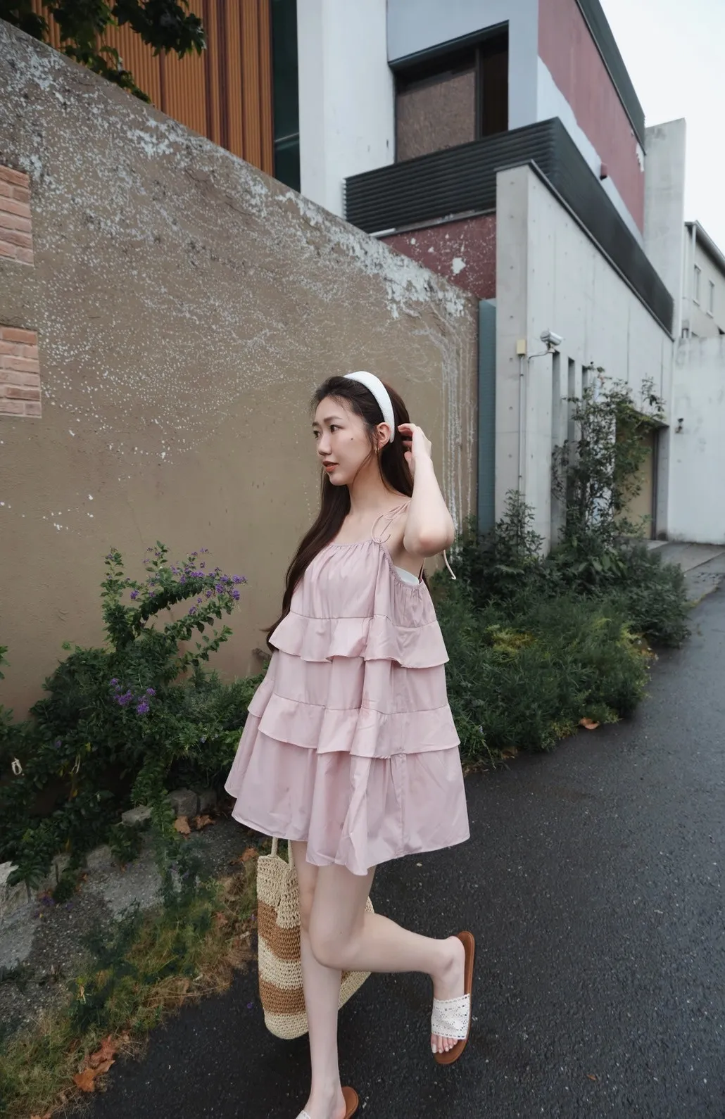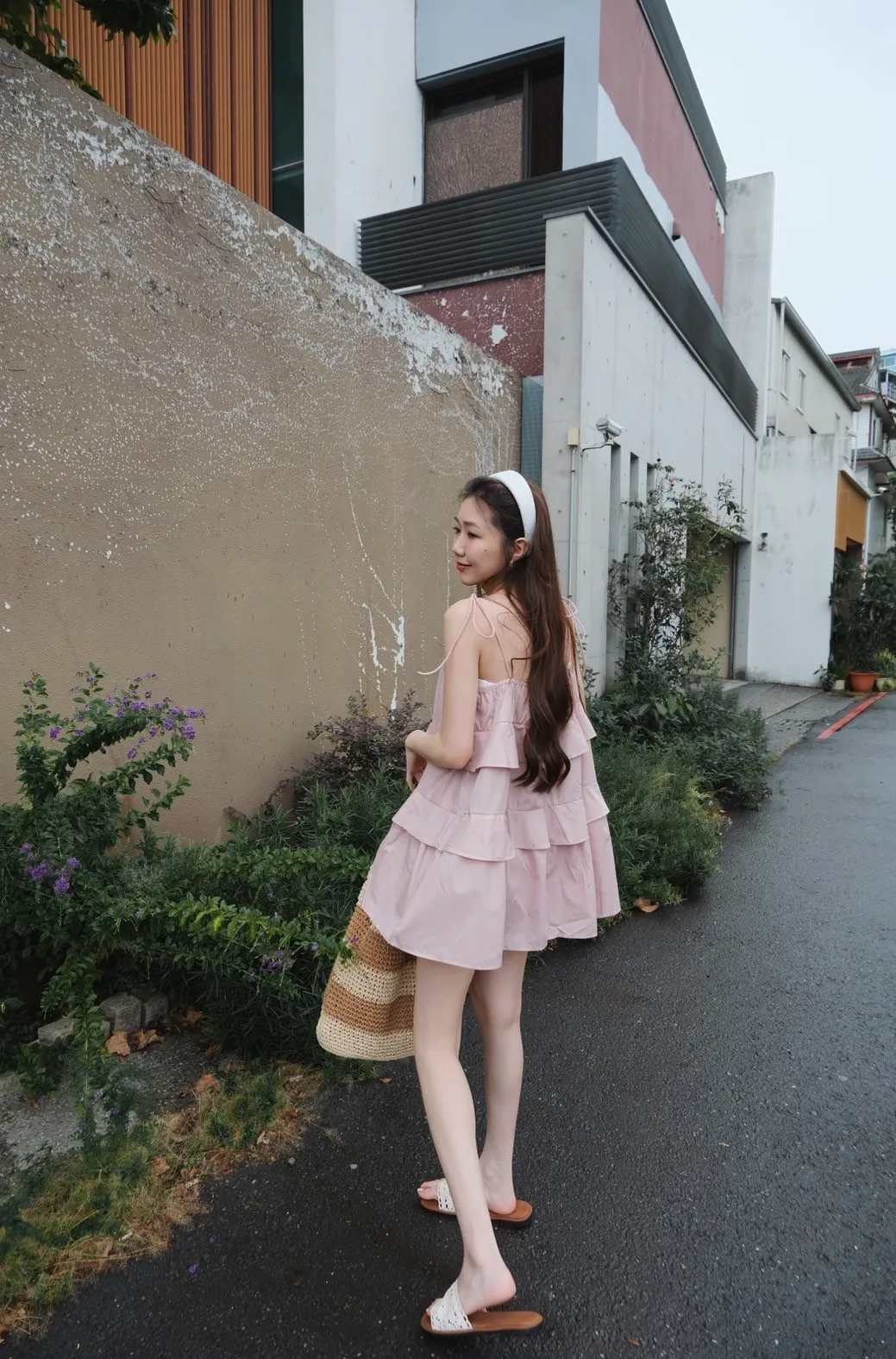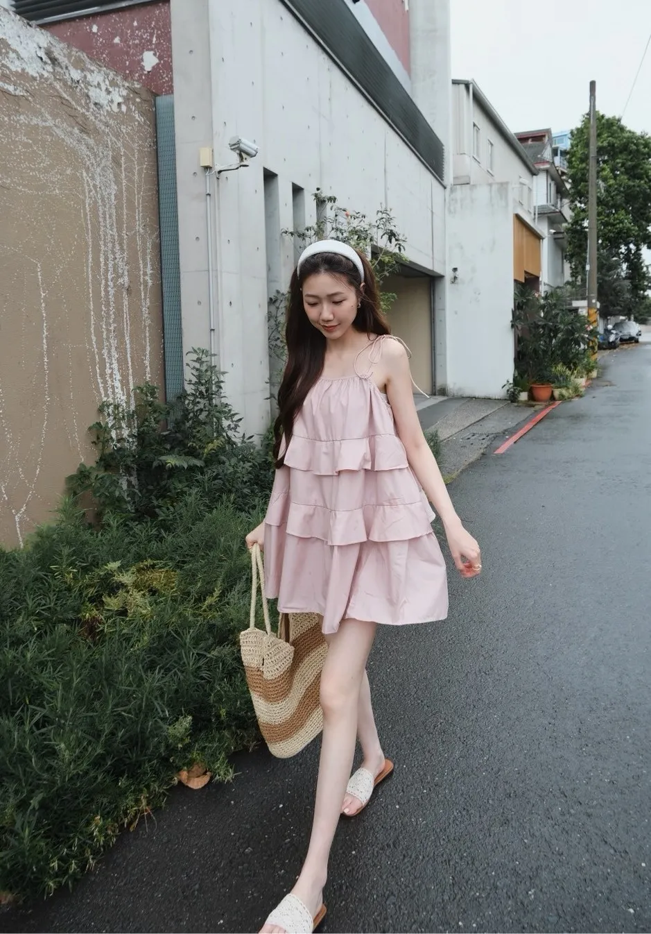 廠商獨家!肩帶可調整 綁帶蛋糕短洋