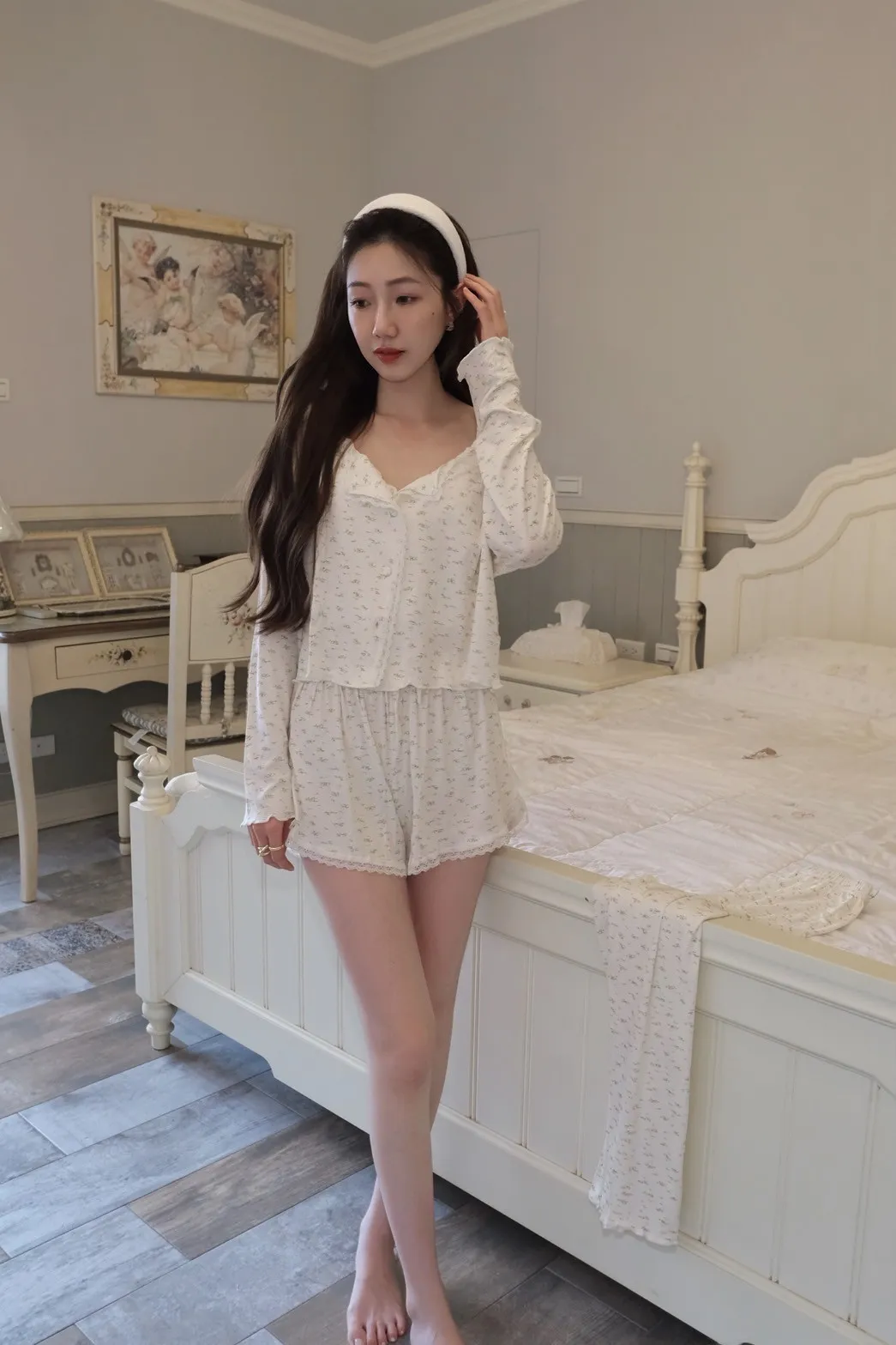 必須爆單!!碎花睡衣四件SET(胸墊可拆)